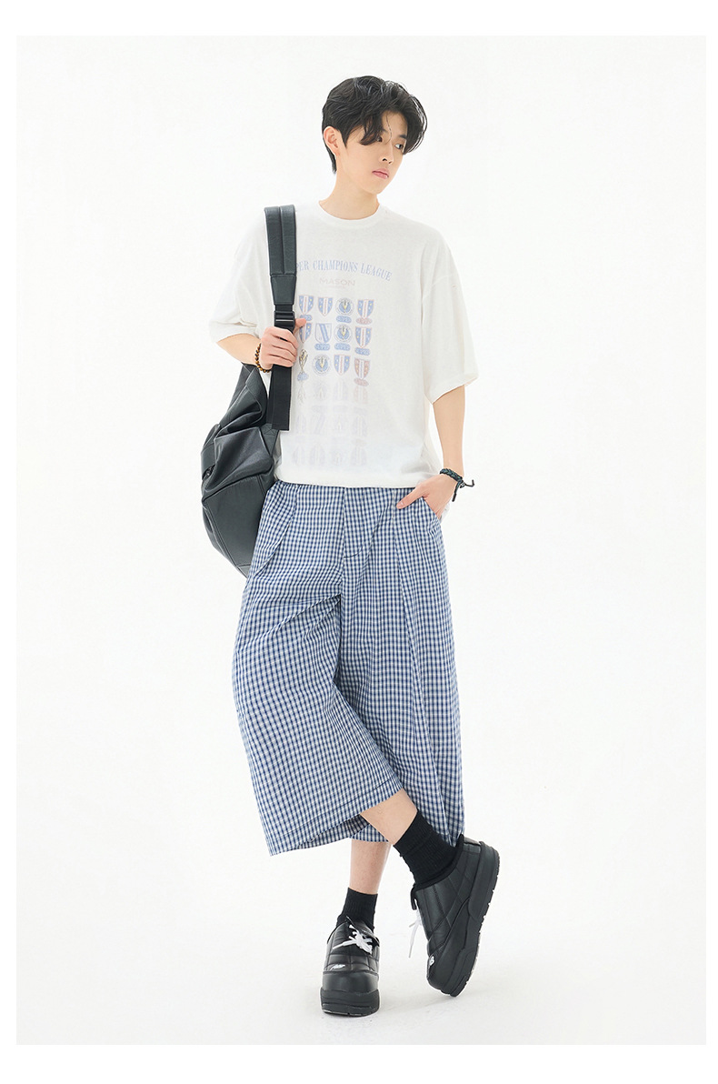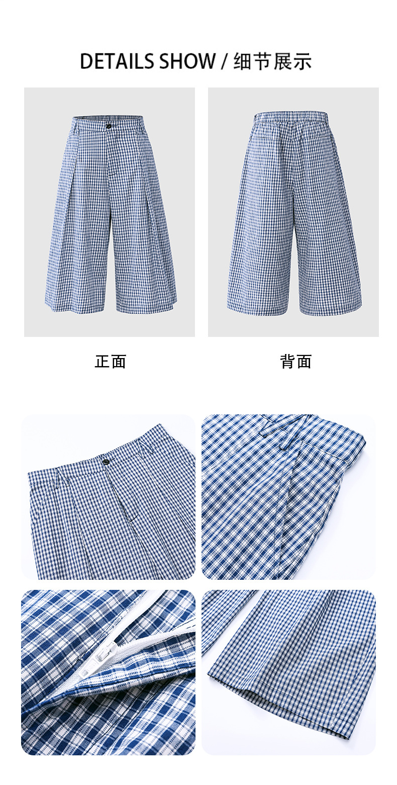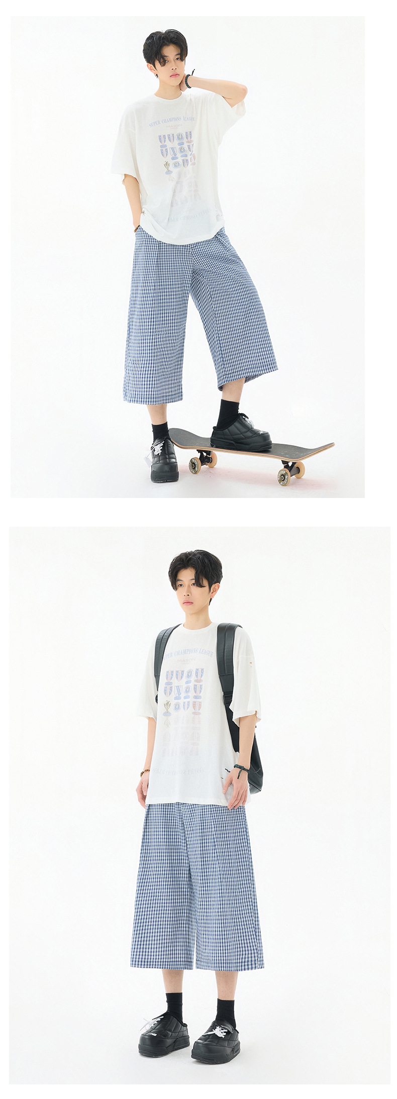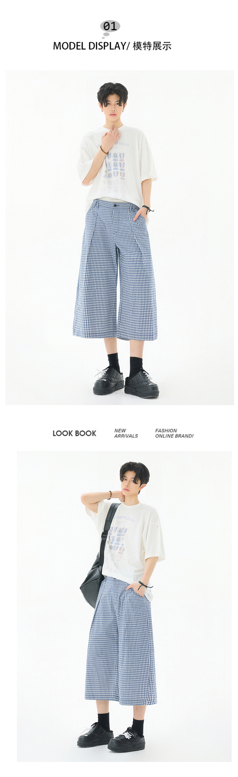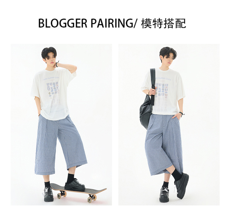 Muqiu 남성복 ∠ 패션 브랜드 미국 격자 무늬 자른 캐주얼 바지 남녀 커플 느슨한 스트레이트 반바지