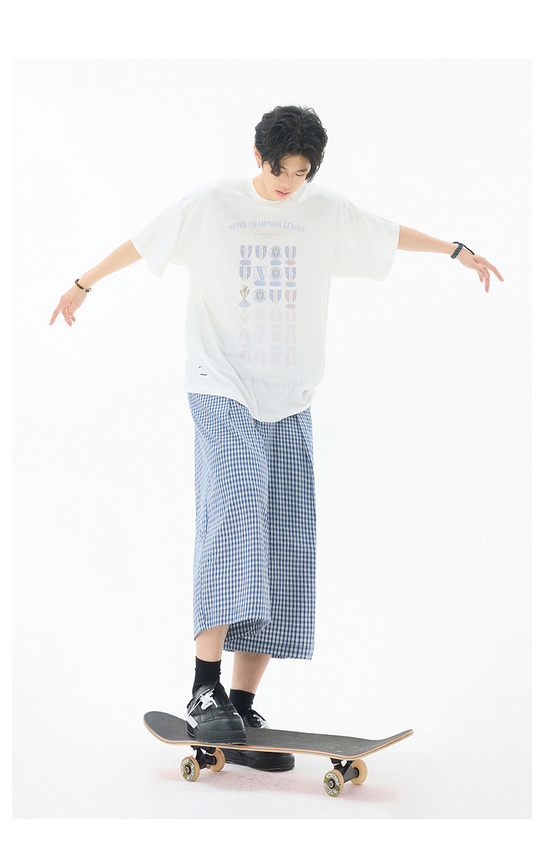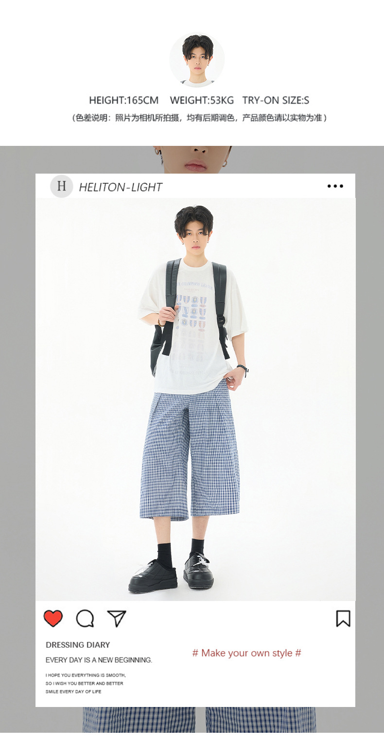 Muqiu 남성복 ∠ 패션 브랜드 미국 격자 무늬 자른 캐주얼 바지 남녀 커플 느슨한 스트레이트 반바지스토어 가기