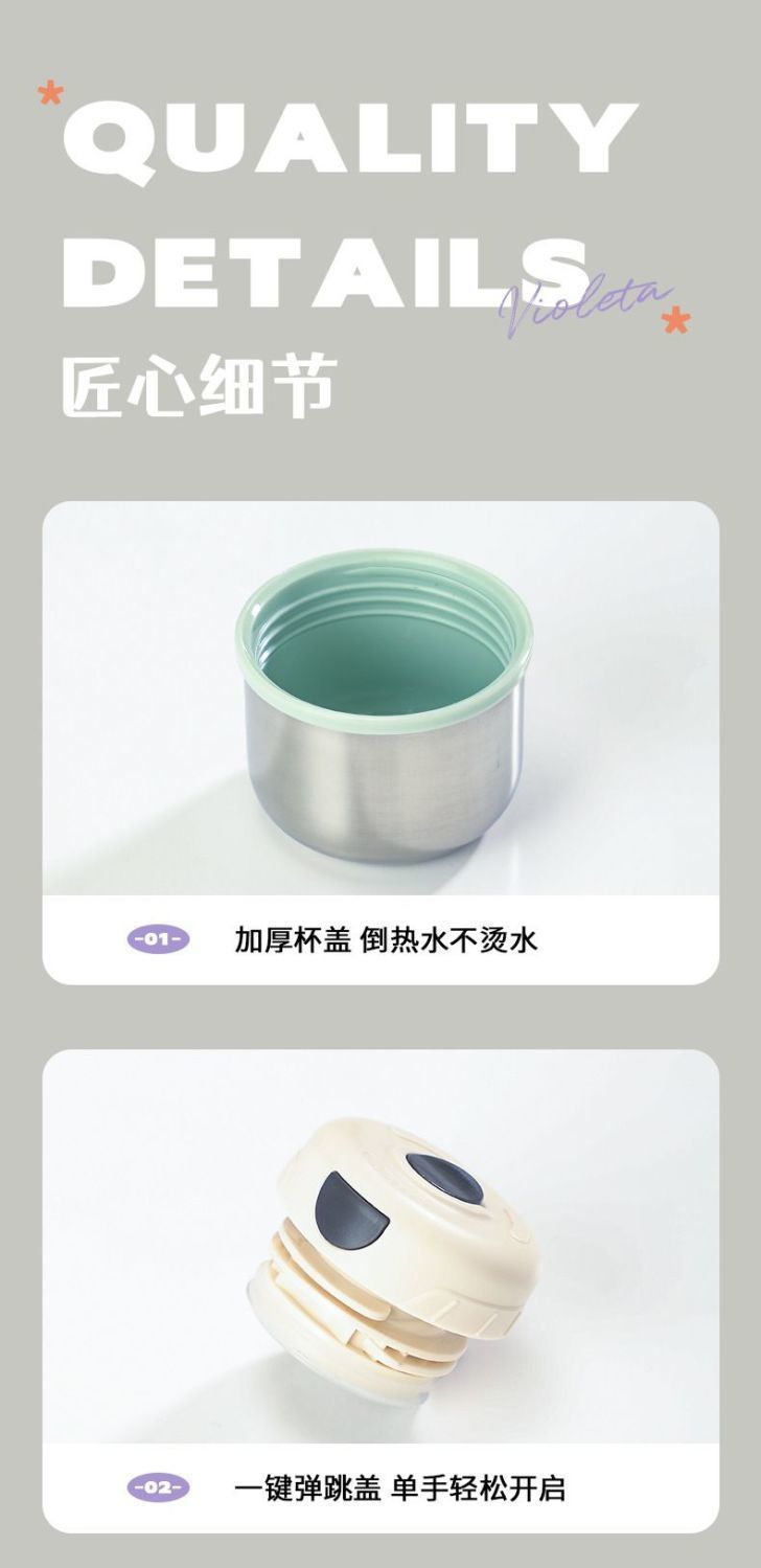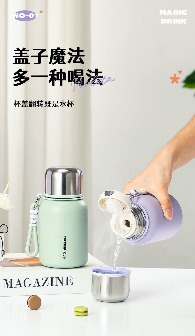 신형 럭셔리 소형 스틸 캐논 총알형 보온병 316 스테인리스 스틸 탄성 뚜껑과 휴대용 학생용 물병