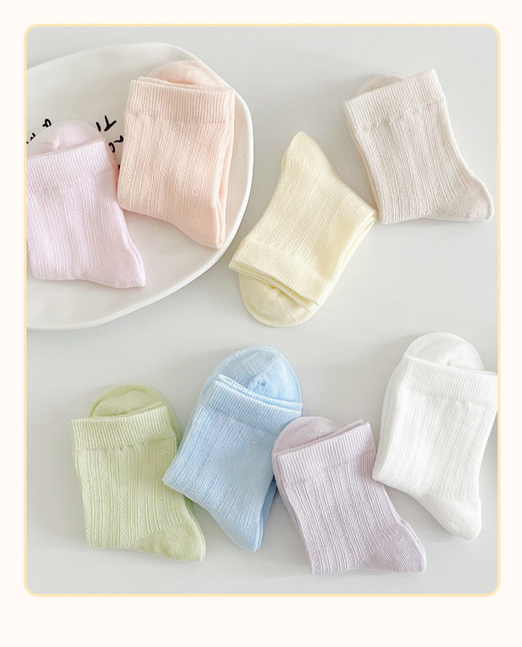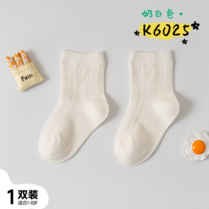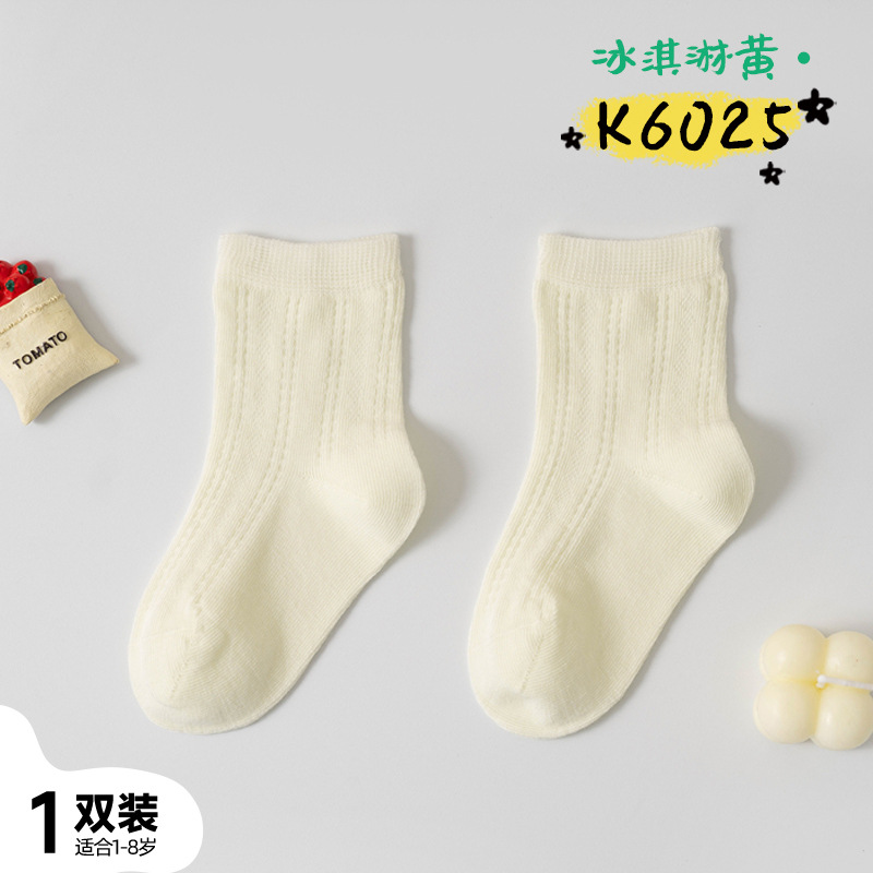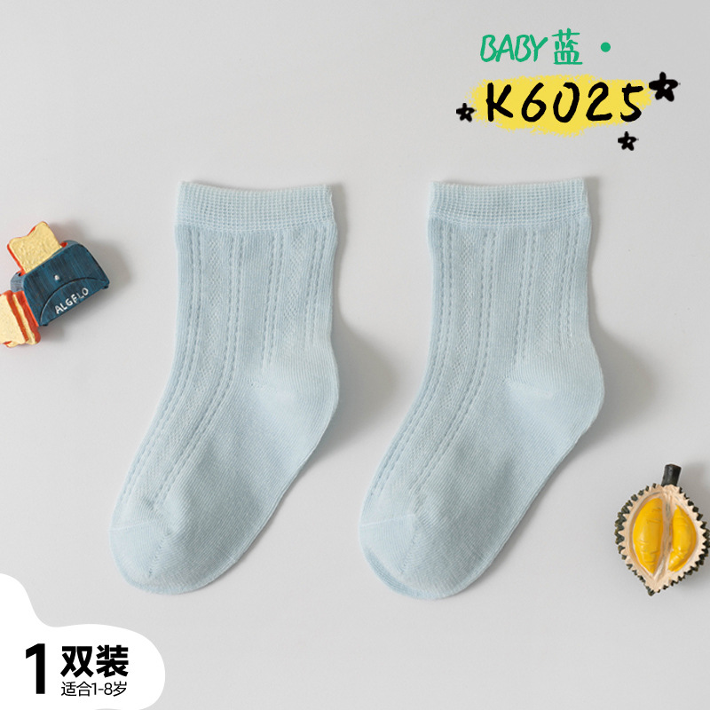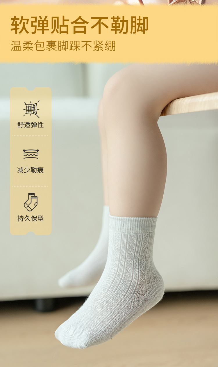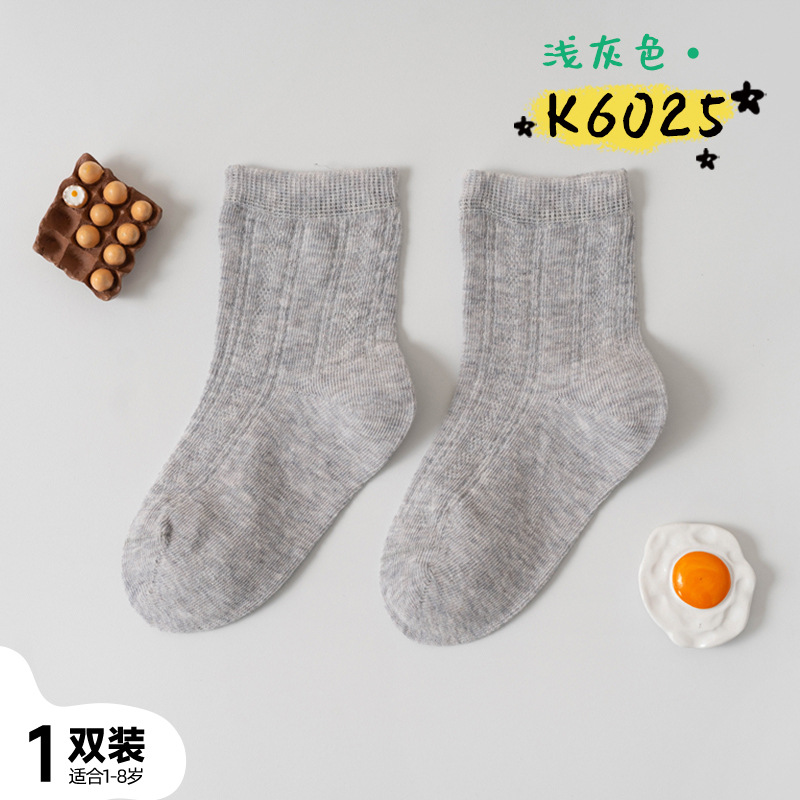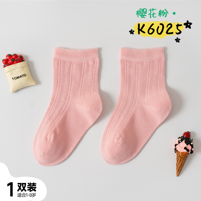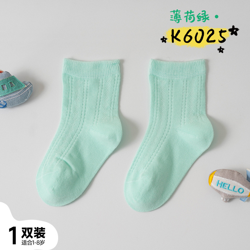 어린이 양말 여름 신제품 단색 땀 흡수 통기성 메쉬 중간 튜브 양말 소년 소녀용, 뼈없는 손바느질