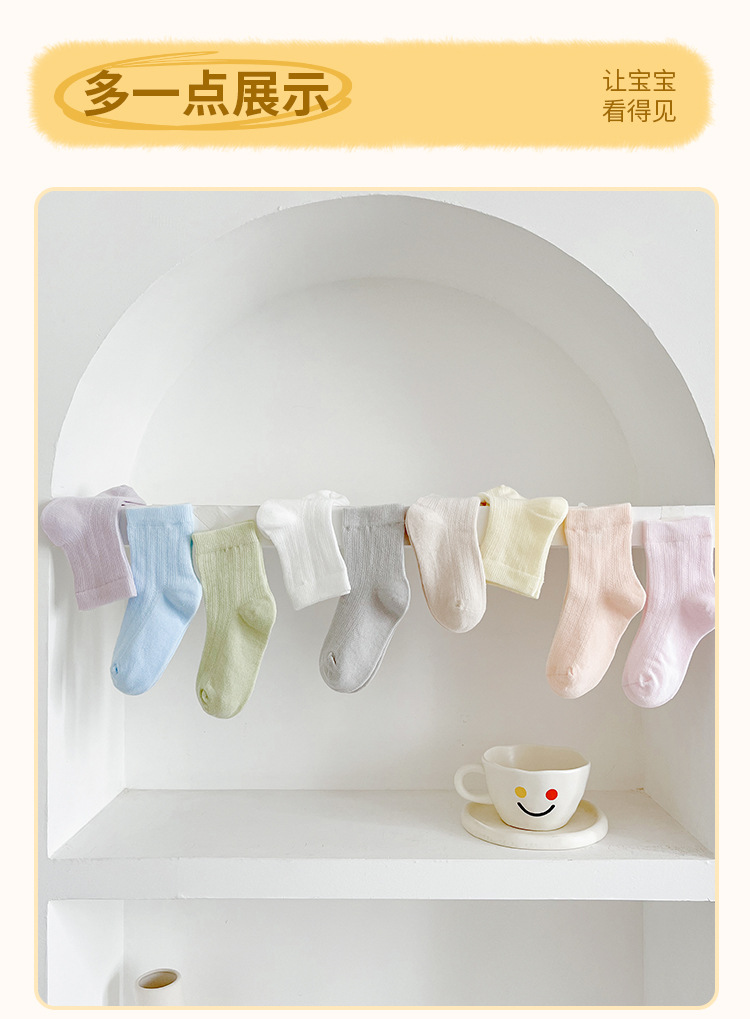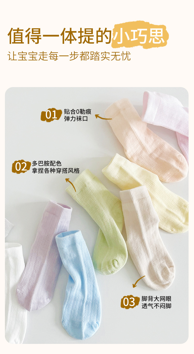 어린이 양말 여름 신제품 단색 땀 흡수 통기성 메쉬 중간 튜브 양말 소년 소녀용, 뼈없는 손바느질스토어 가기