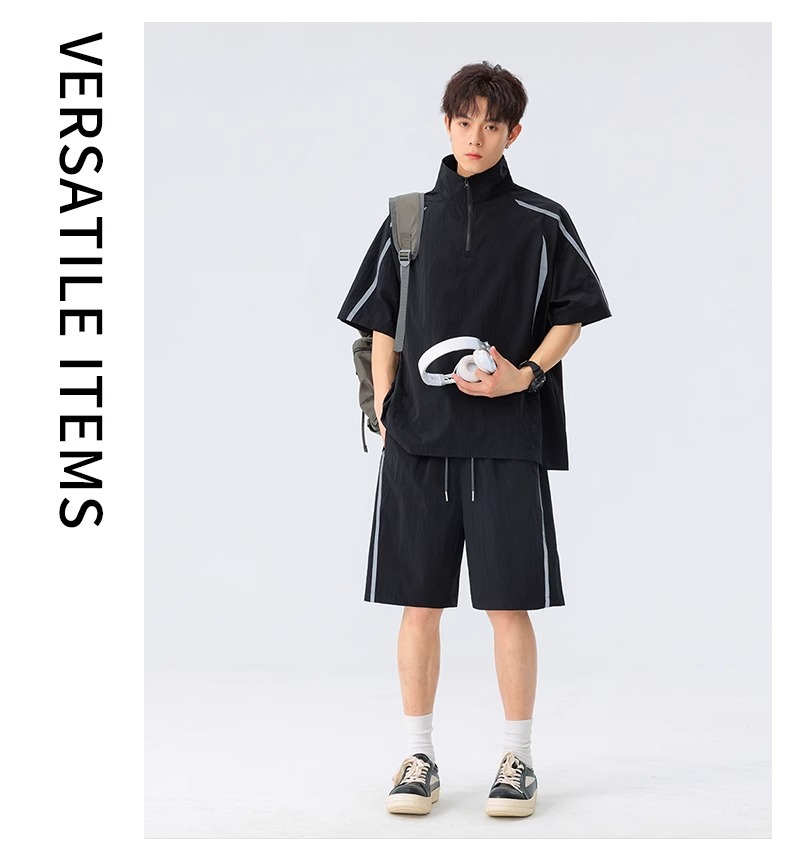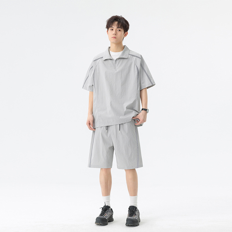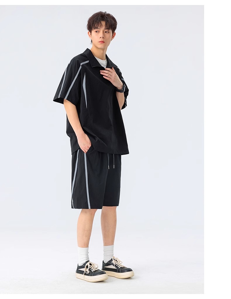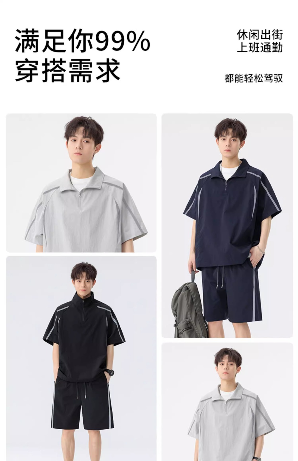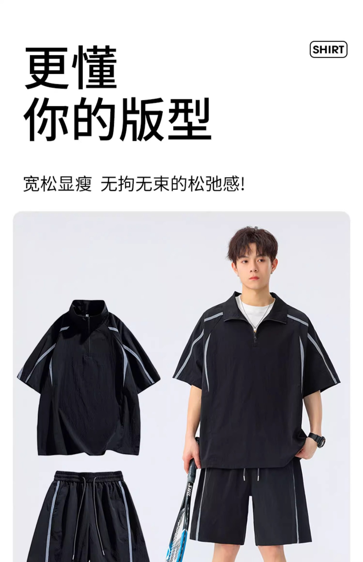 NASA 아이스 실크 캐주얼 스포츠 세트 남자 여름 패션 2025 새로운 느슨한 쿨 핸섬 남성복스토어 가기