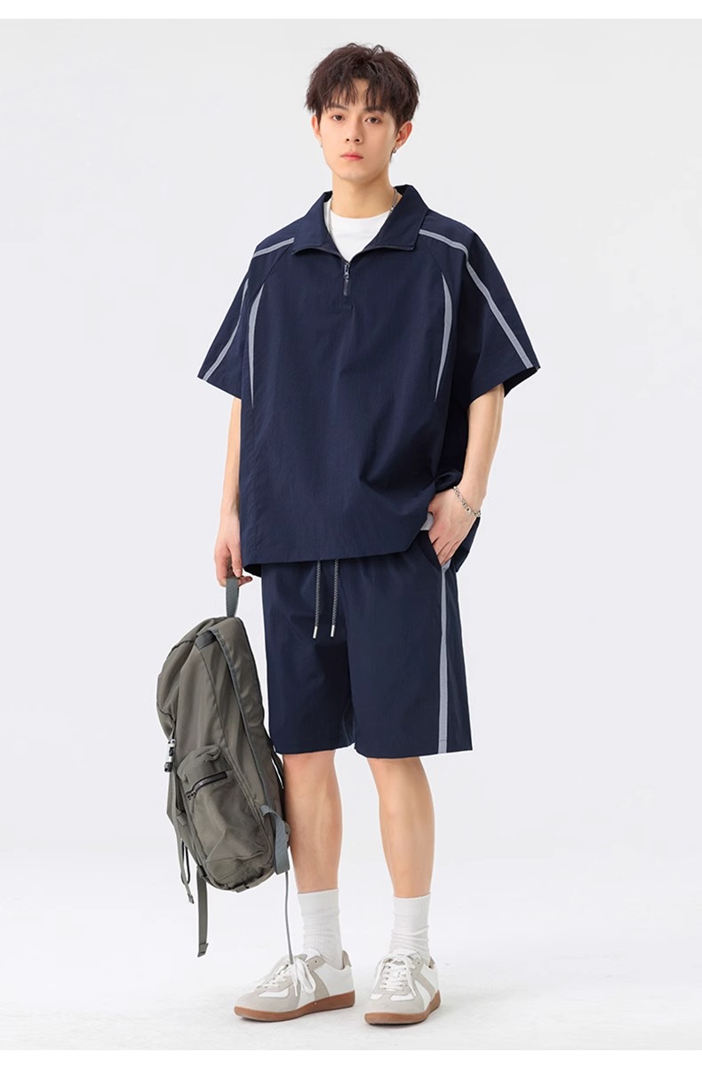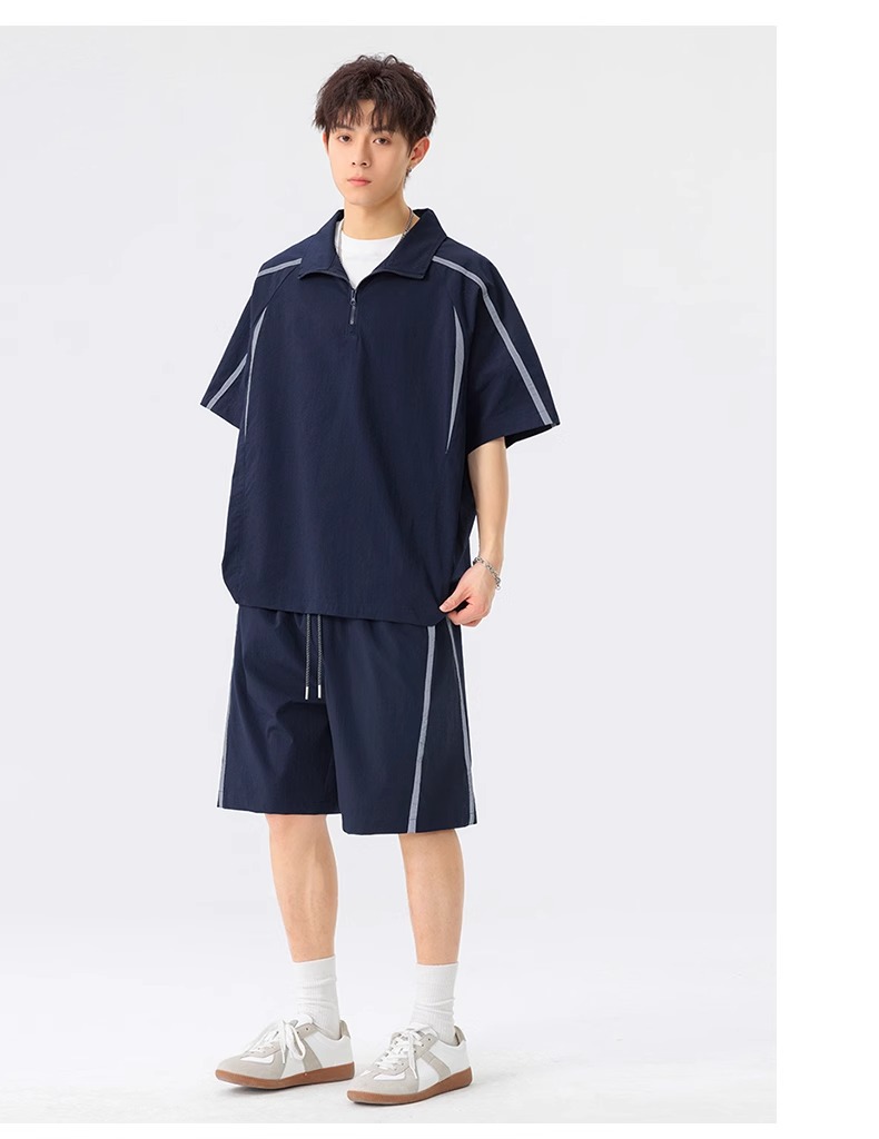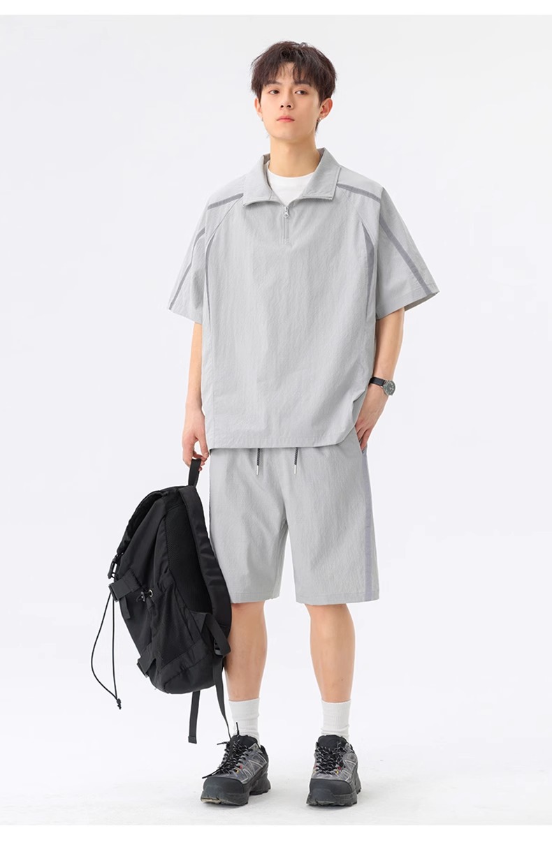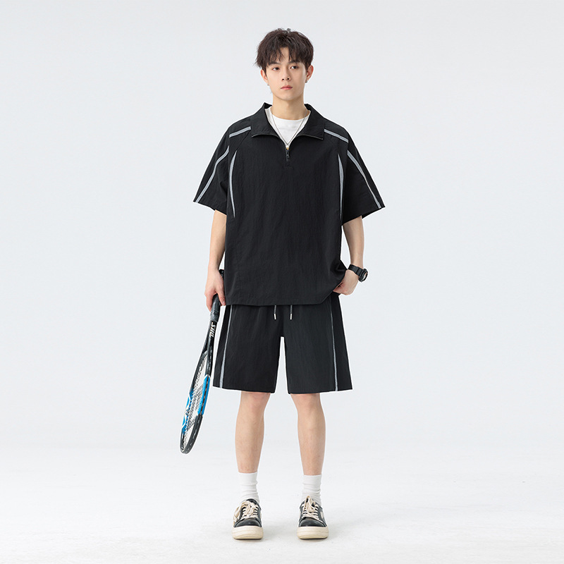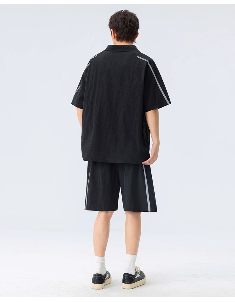 NASA 아이스 실크 캐주얼 스포츠 세트 남자 여름 패션 2025 새로운 느슨한 쿨 핸섬 남성복스토어 가기