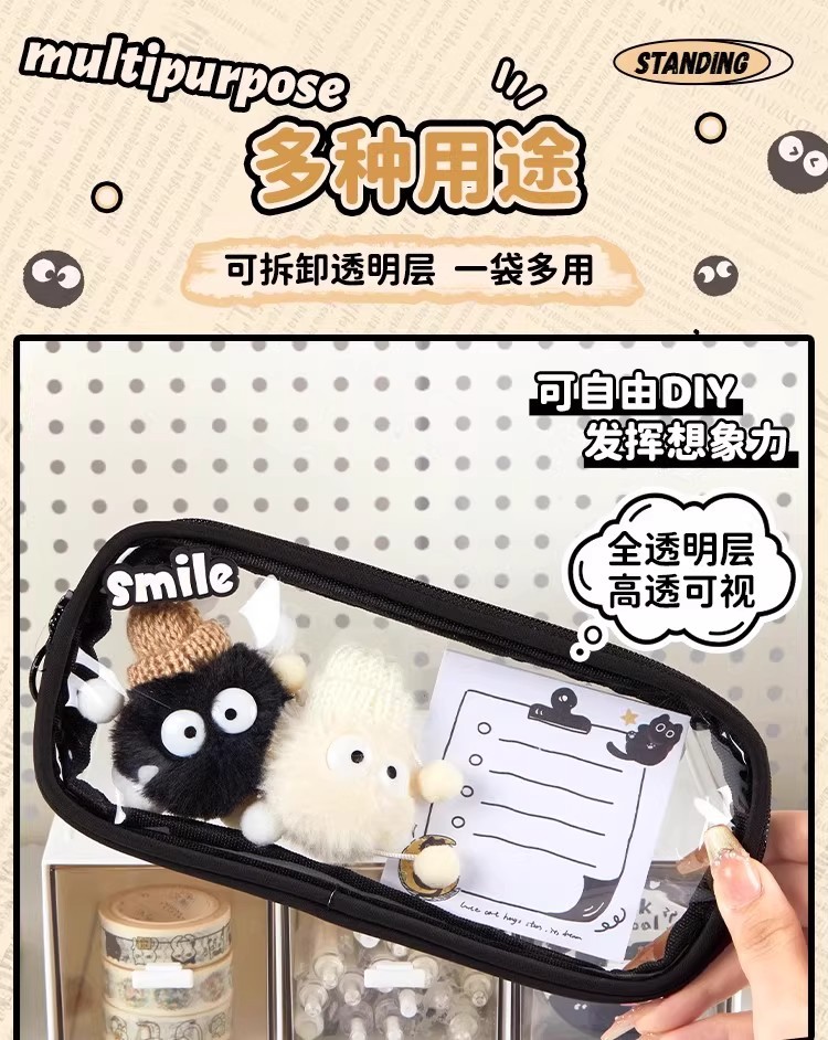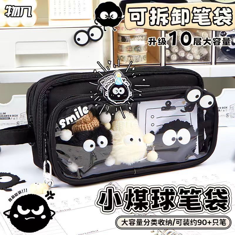 소녀와 소년을위한 작은 석탄 볼 연필 케이스 이동식 슈퍼 파이어 연필 케이스 투명 높은 색 가치 문구 연필 케이스 문구 가방