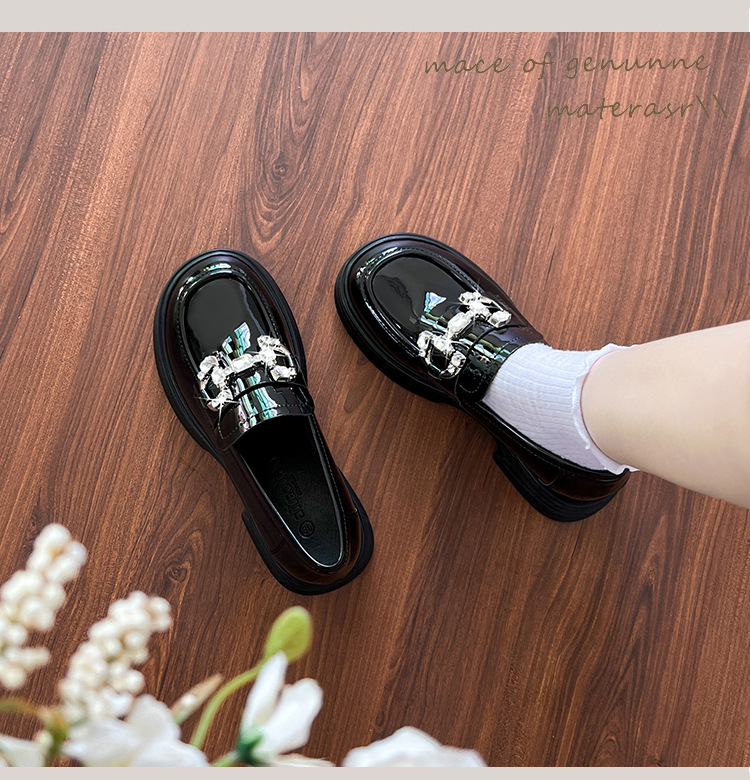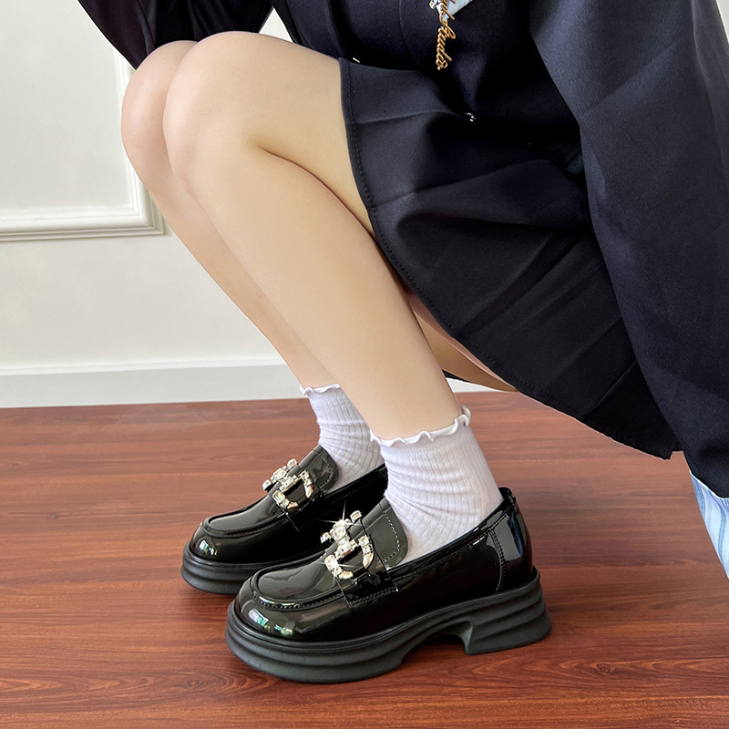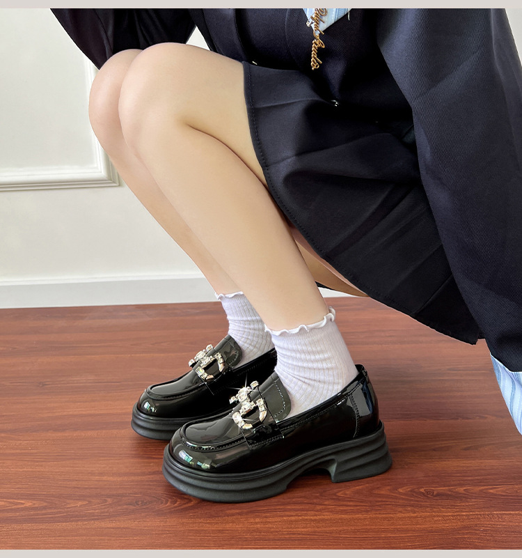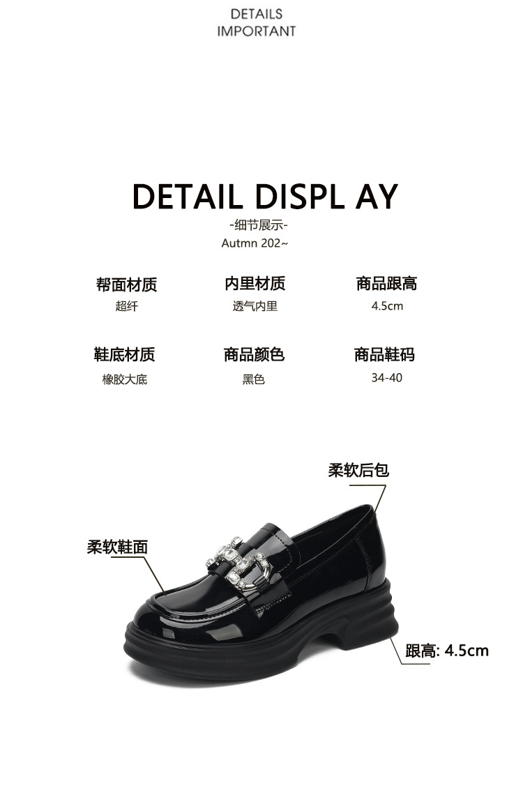 여성을위한 두꺼운 밑창 로퍼 2025 가을 새로운 작은 가죽 신발 확대 및 뚱뚱한 작은 크기 대형 여성 신발 드롭 배송