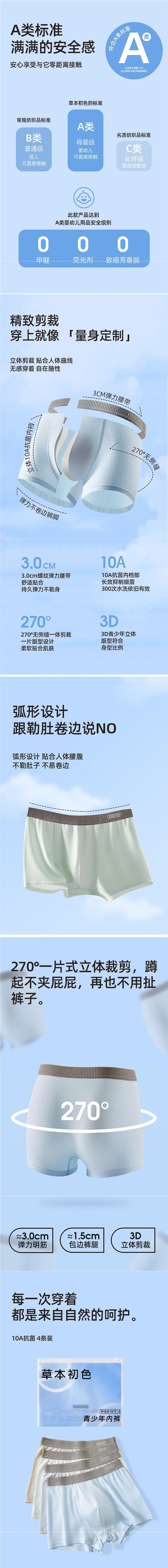 허벌 같은 뽕나무 실크 Lyocell 청소년 속옷 아이스 실크 통기성 소년 발달 초기 고등학생스토어 가기