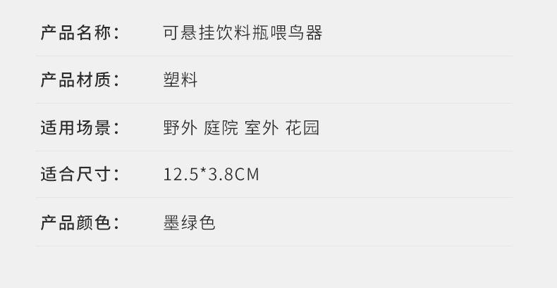 플라스틱 후크가 있는 도매 야외 새 모이통 발코니 안뜰 정원 야생 새 모이통에는 병이 포함되어 있지 않습니다.