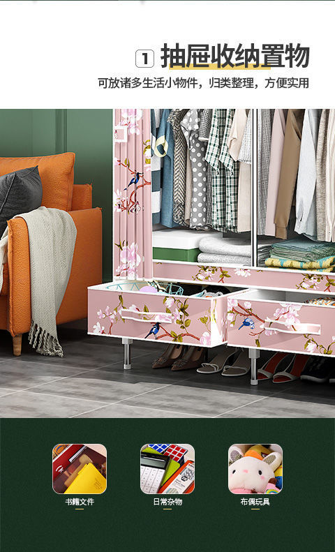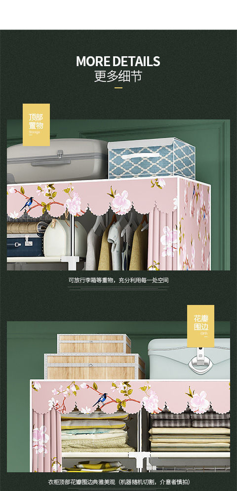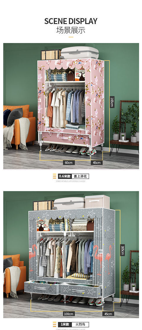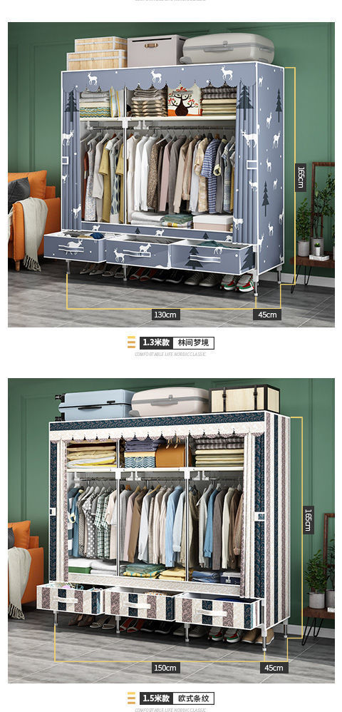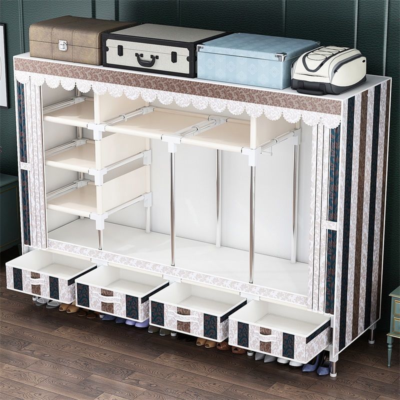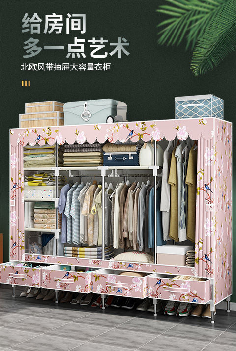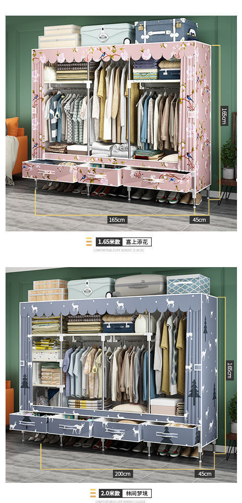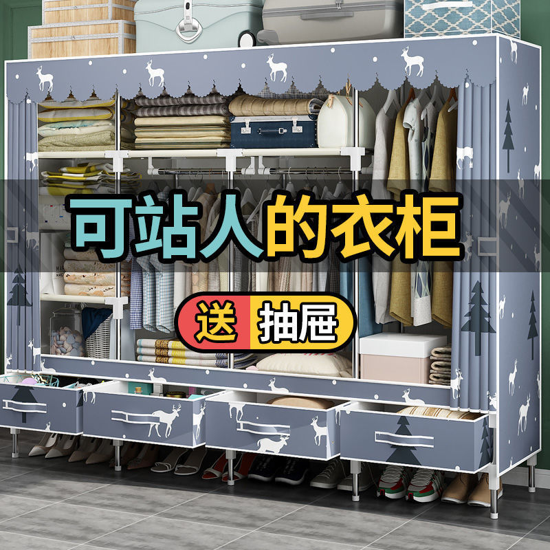 서랍형 간이 옷장 두꺼운 강철 파이프 천 옷장 더블 캐비닛 대형 침실 조합 가정용 대형 도매스토어 가기