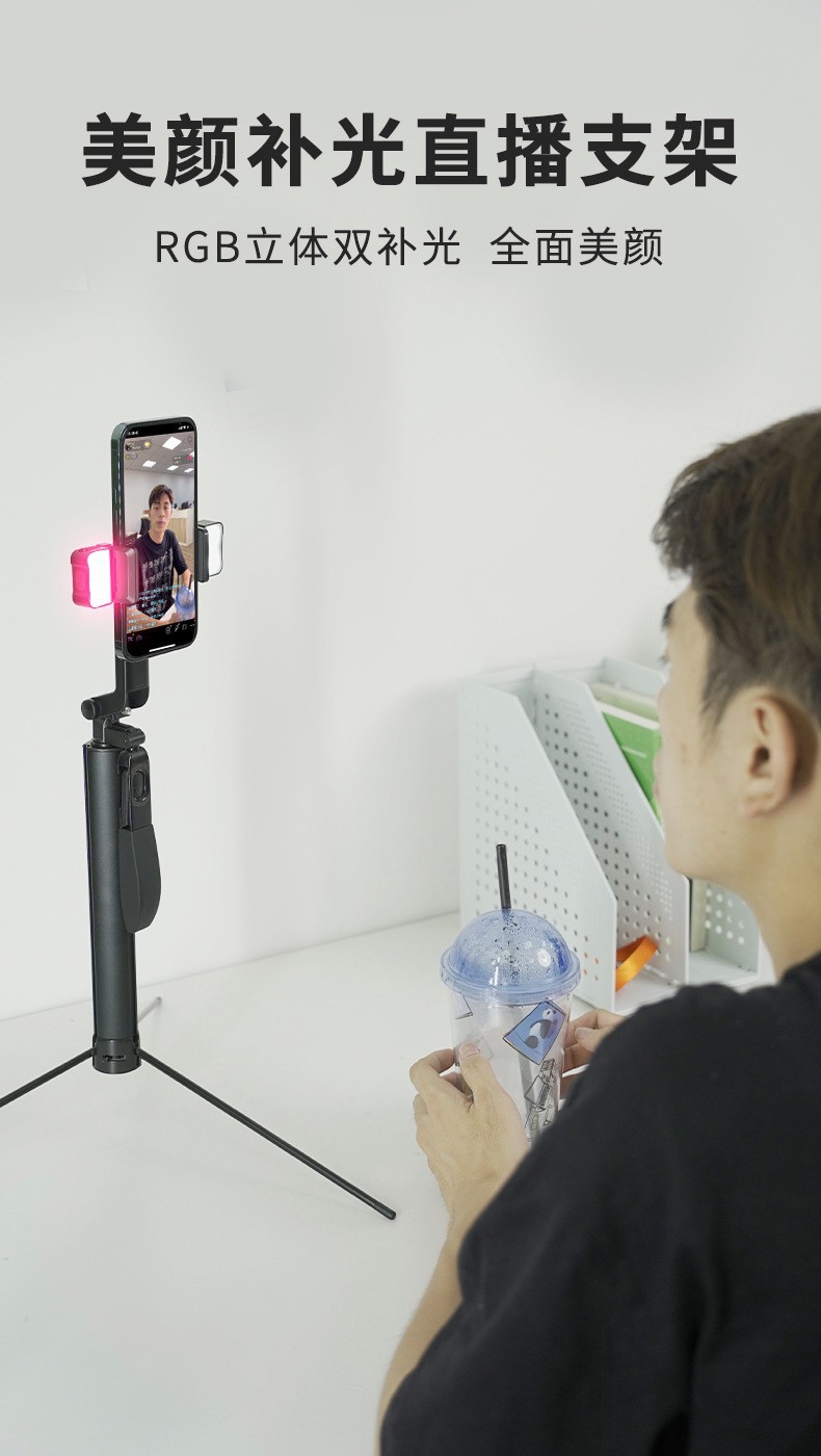 스태킹 A21S 휴대폰 셀카봉 듀얼 필 라이트 휴대용 안정기 플로어 스탠딩 텔레스코픽 로드 라이브 스트리밍 브래킷 삼각대스토어 가기