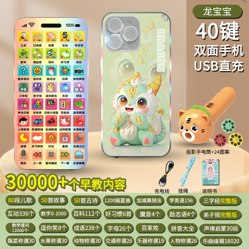 씹을 수 있는 조기 교육 어린이 시뮬레이션 휴대 전화 드래곤의 해 계몽 교육 터치 스크린 0-8 세 소년 소녀 음악 전화