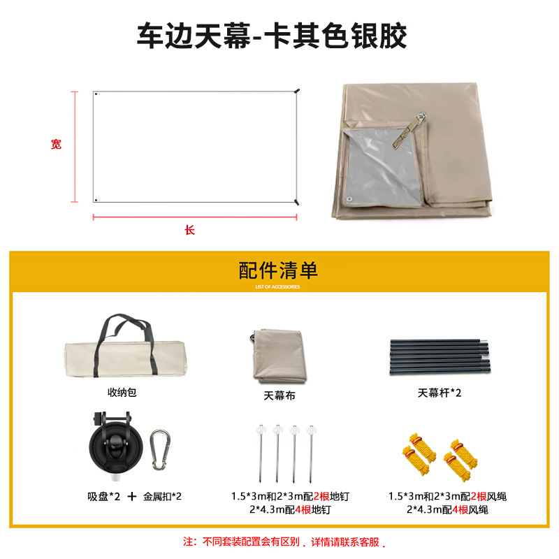 • 200*430 [봉 2개 + 흡착컵 2개 + 윈드 로프 4개 + 형광 못 4개 + 금속 버클 2개 + 보관 가방]