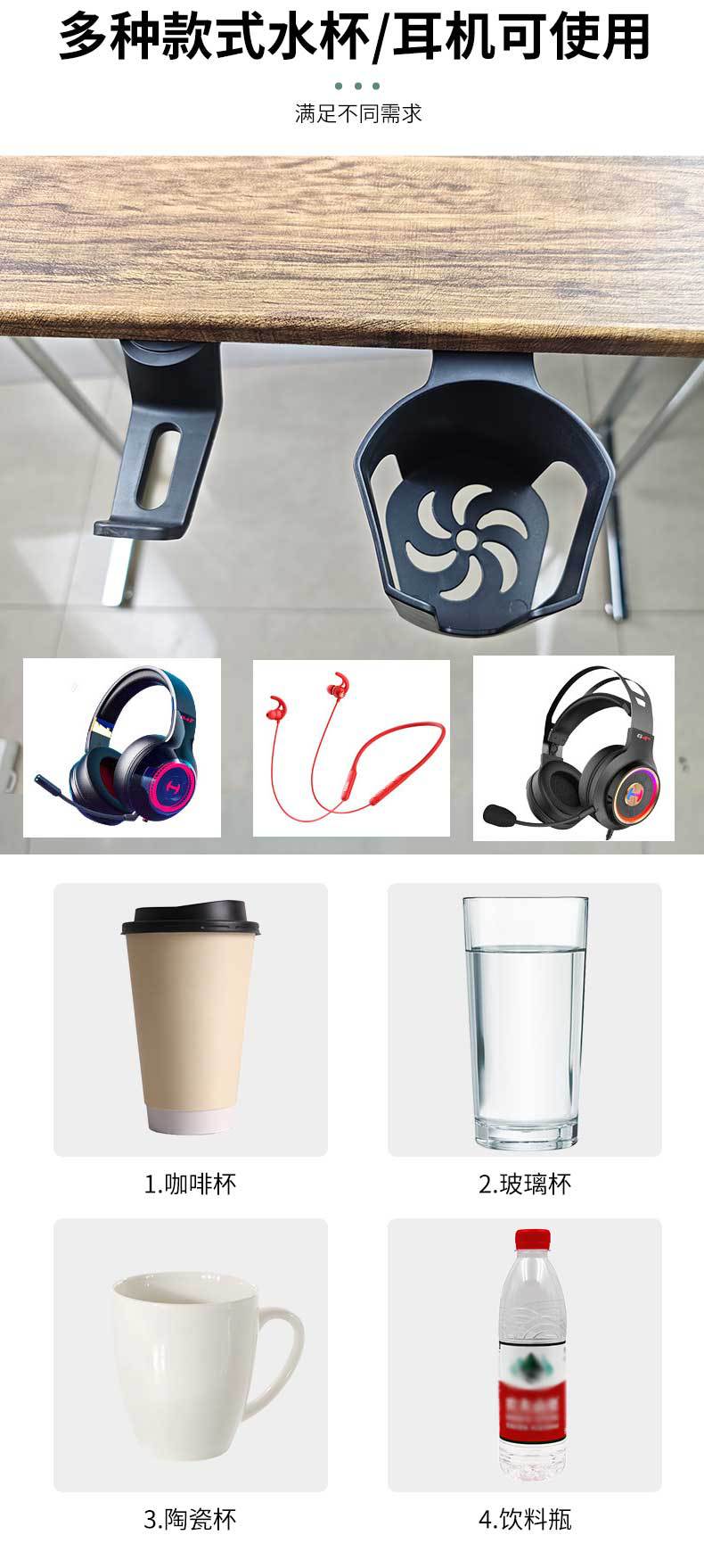 새로운 리프팅 테이블 액세서리 컴퓨터 책상 헤드폰 후크 워터 컵 홀더 회전식 워터 컵 홀더 헤드폰 홀더 2 피스 세트