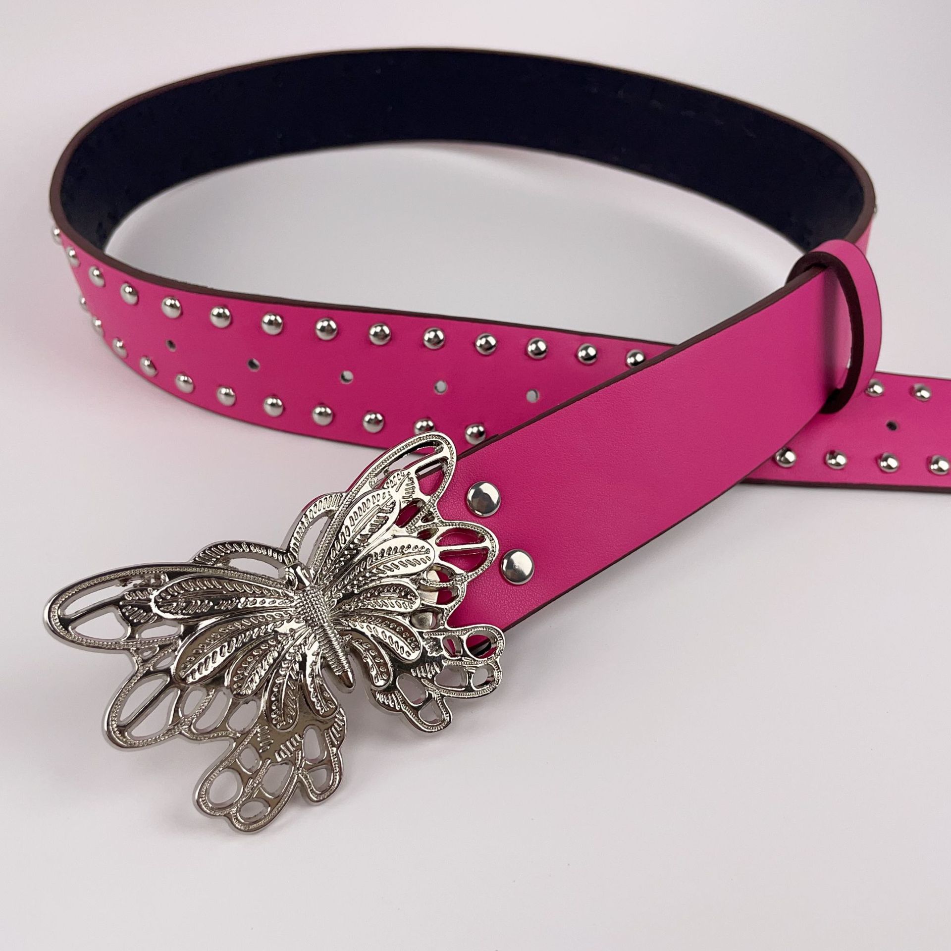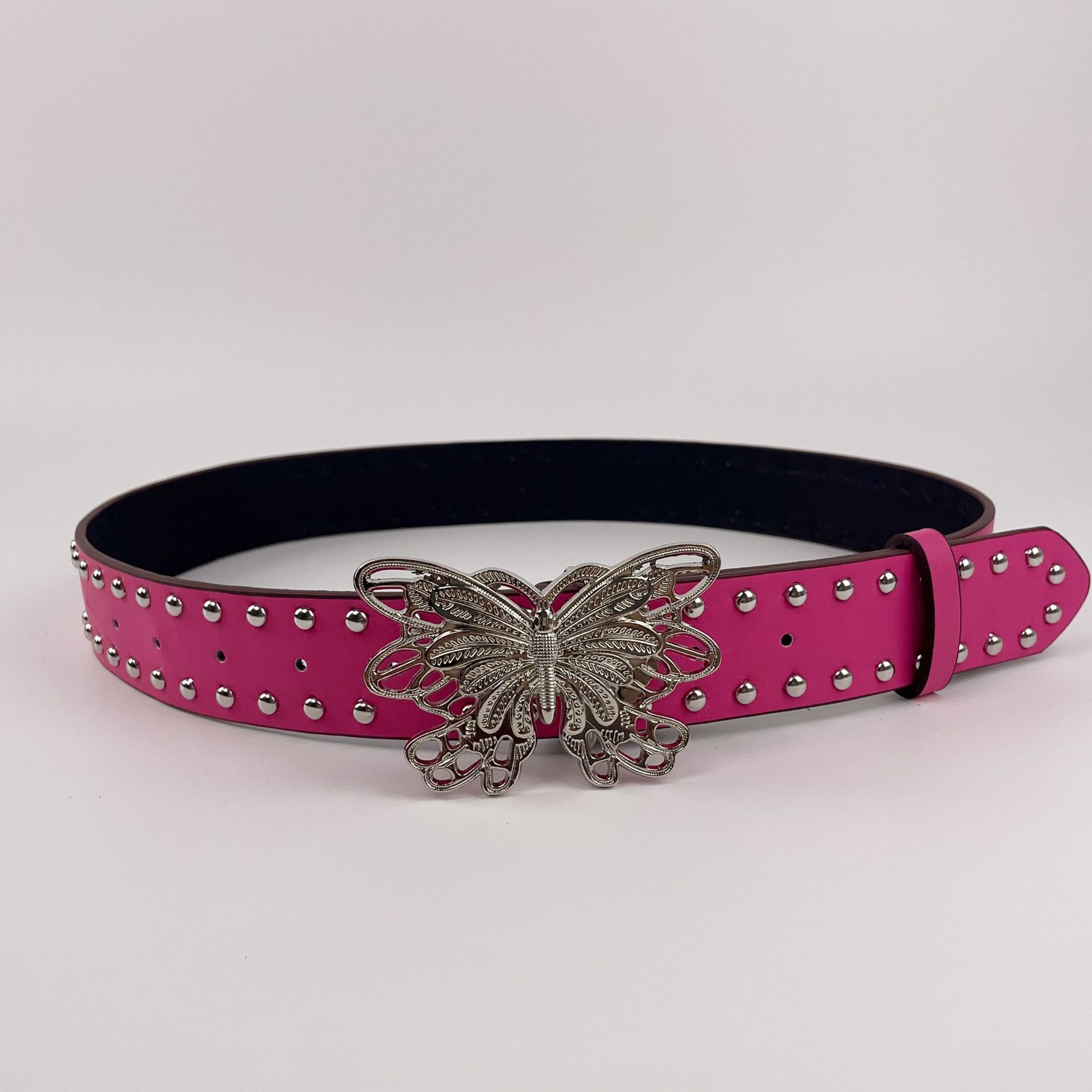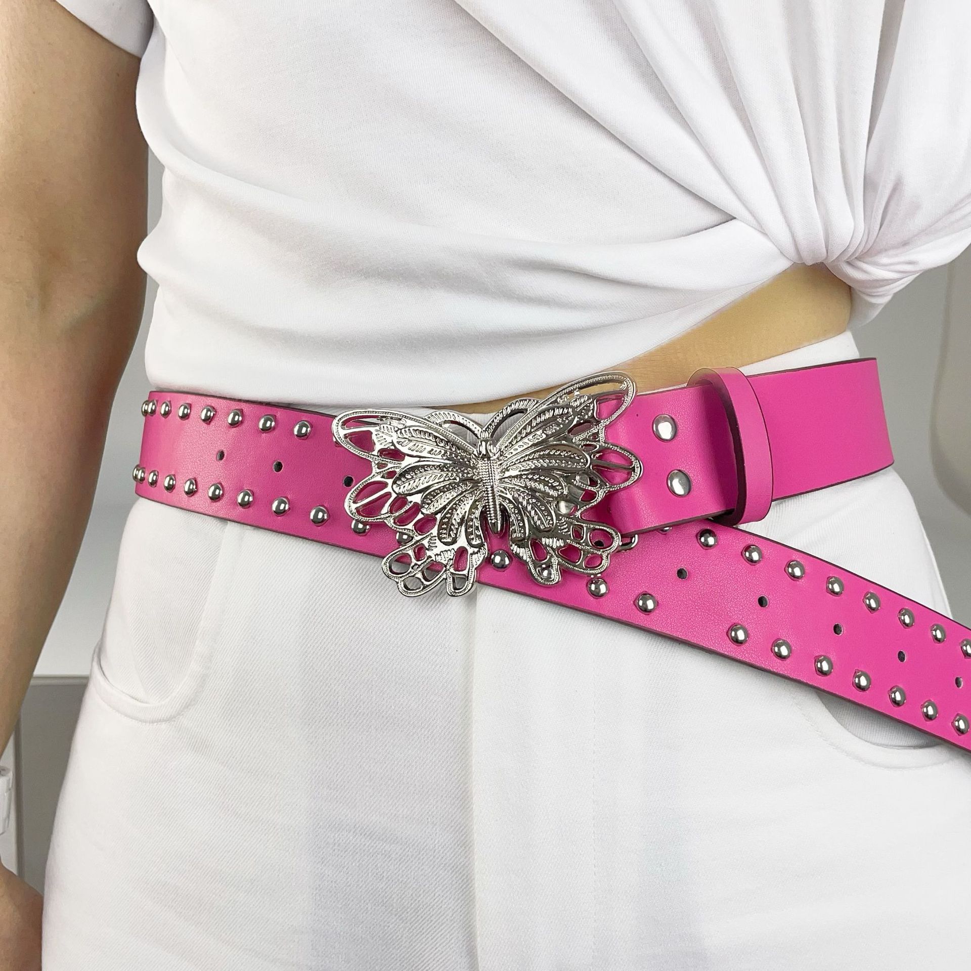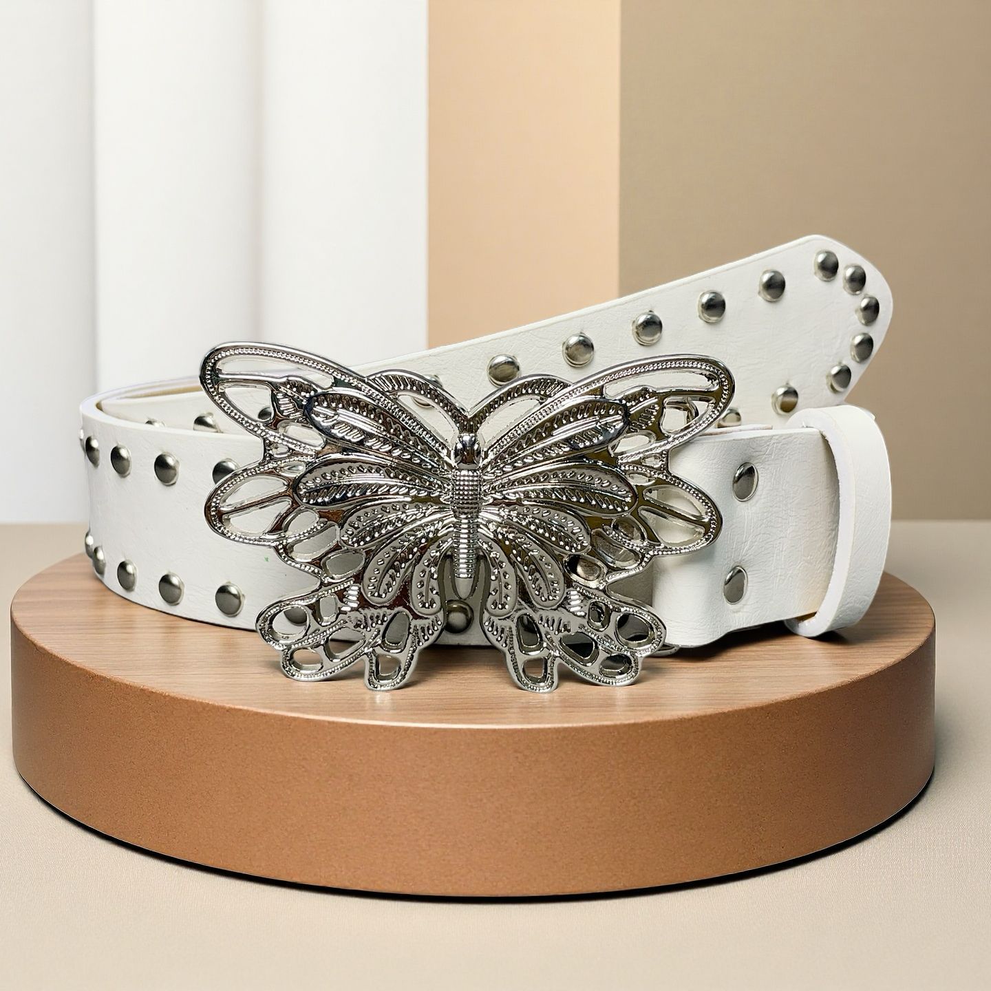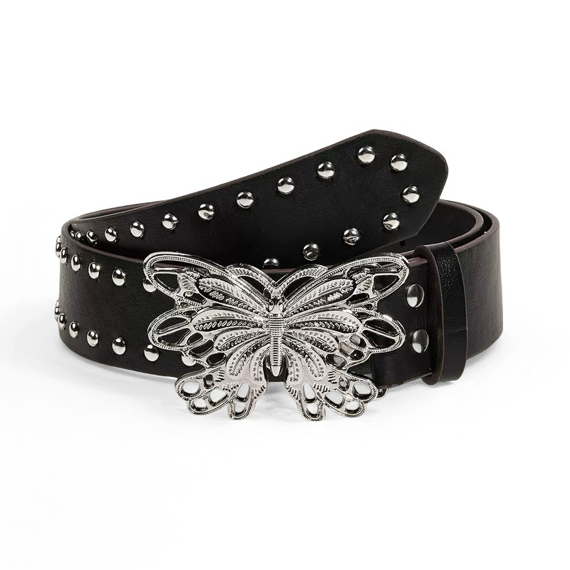 여름 새로운 스타일 리벳 나비 모양의 맞춤형 여성 펑크 스타일 청바지 세련된 다목적 바지 하이 엔드 여성 벨트스토어 가기