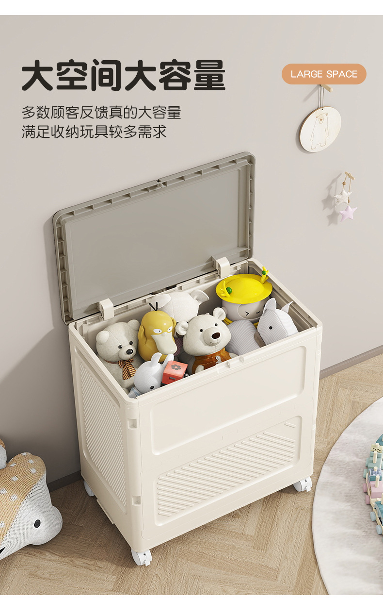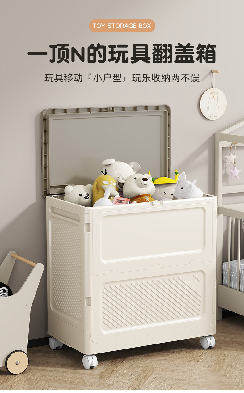 25 년 새로운 스타일의 보관 상자 가정용 바닥 휠 대용량 어린이 장난감 접이식 플립 상자 보관 상자스토어 가기