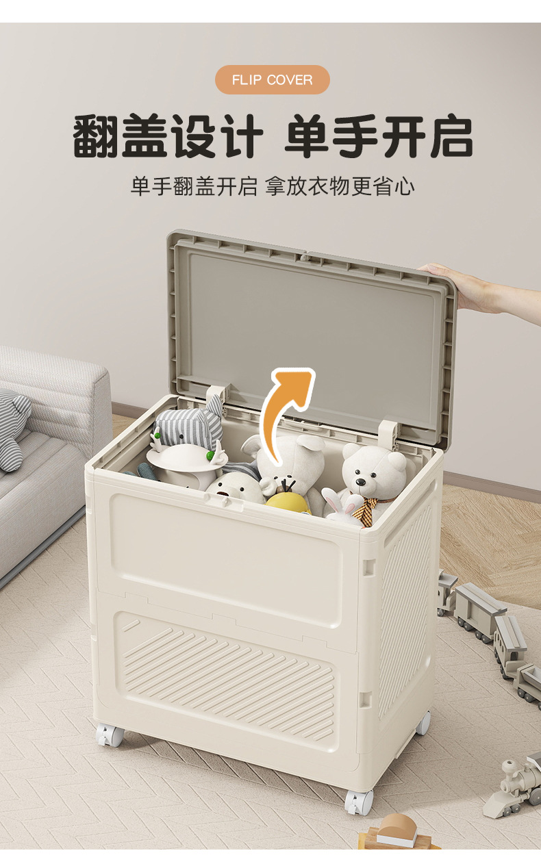 25 년 새로운 스타일의 보관 상자 가정용 바닥 휠 대용량 어린이 장난감 접이식 플립 상자 보관 상자