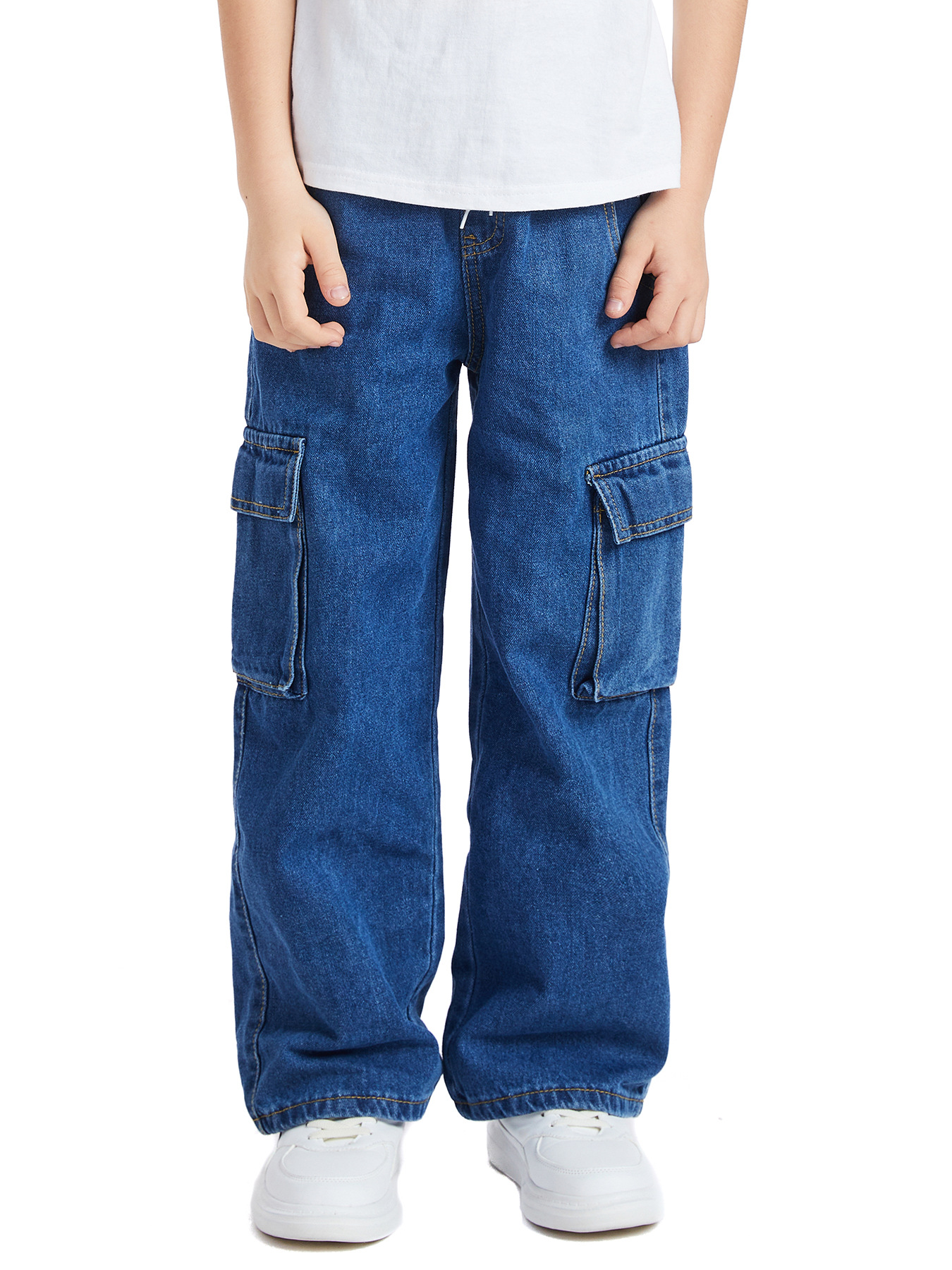 유럽과 미국 독점 국경 아마존 십대 소년 새로운 신축성있는 허리 드로 스트링 디자인 넓은 다리 데님 바지