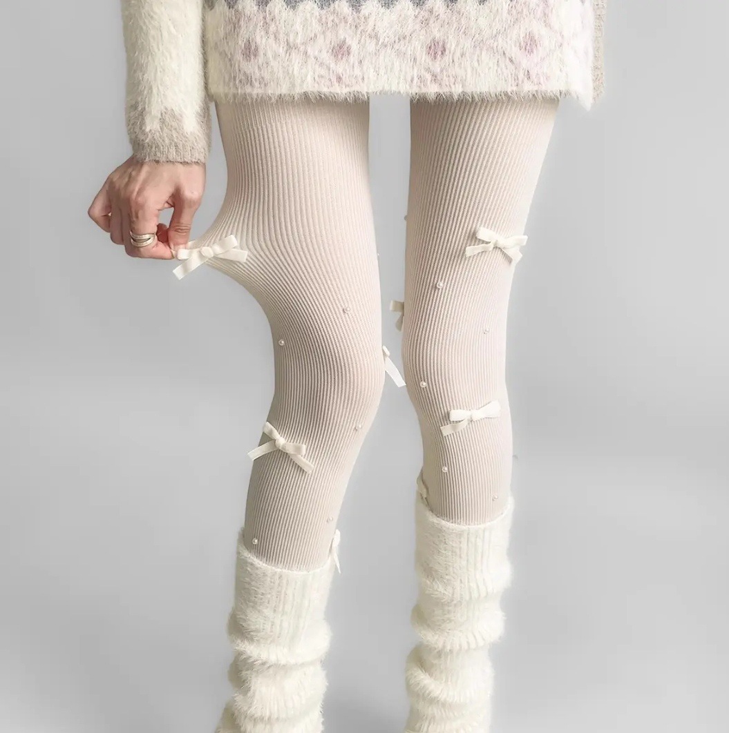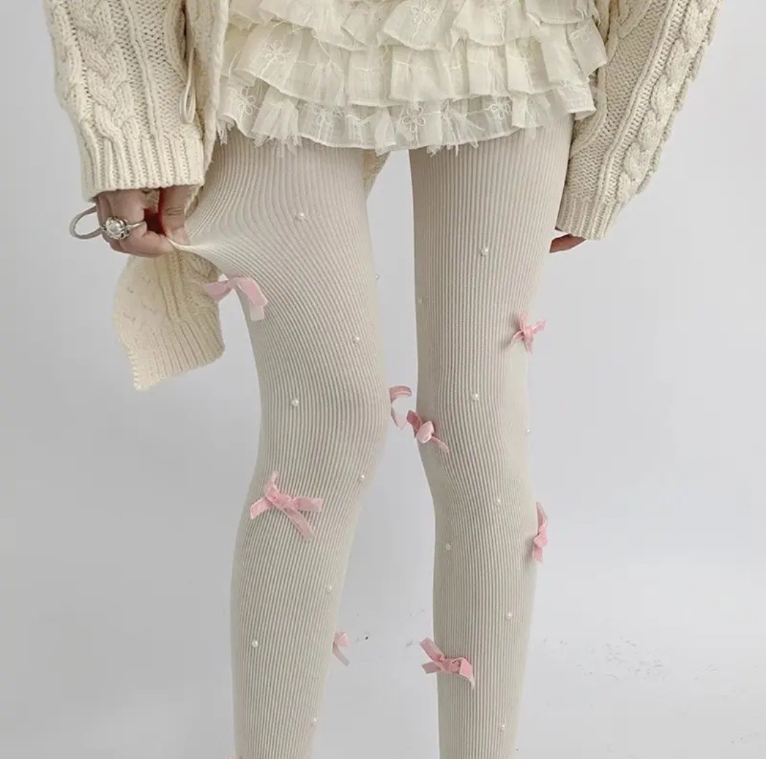 일본 진주 리본 로리타 팬티 스타킹 여성 순수한 욕망 스타일 흰색 얇은 틈새 디자인 슬리밍 양말