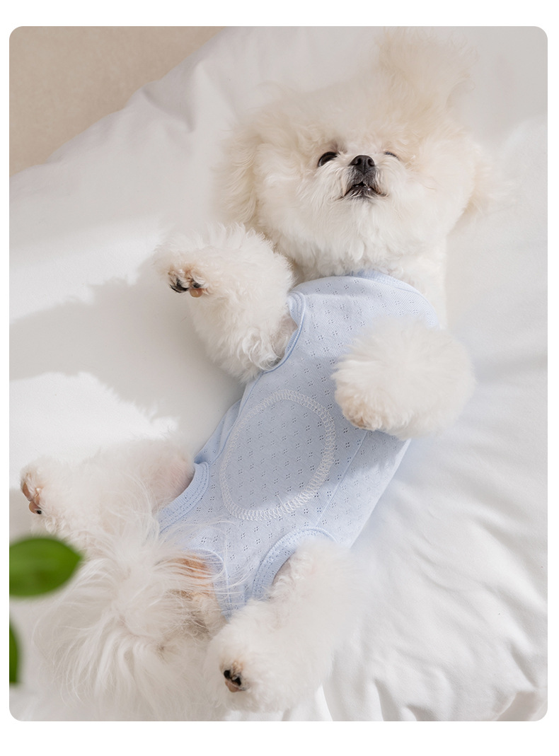 애완 동물 옷 봄과 여름 얇은 통기성 구름 중소형 개 네 발 배꼽 옷 테디 비숑 개 옷