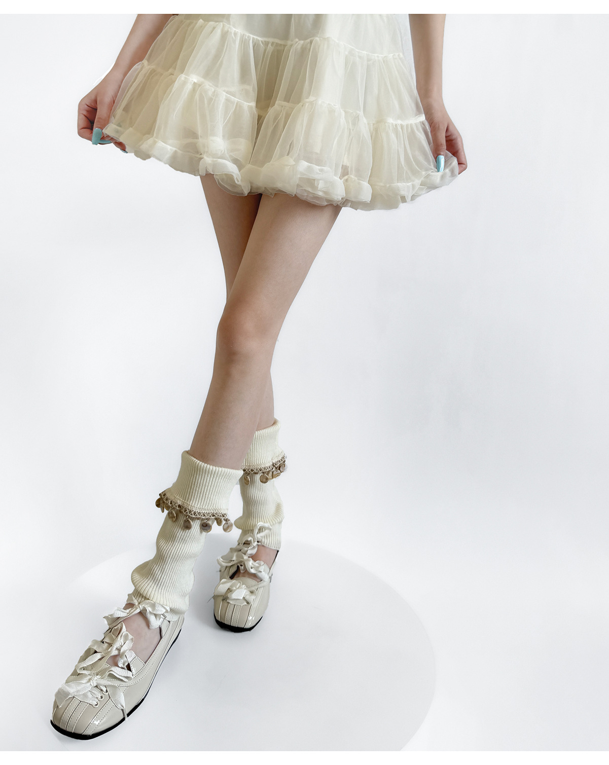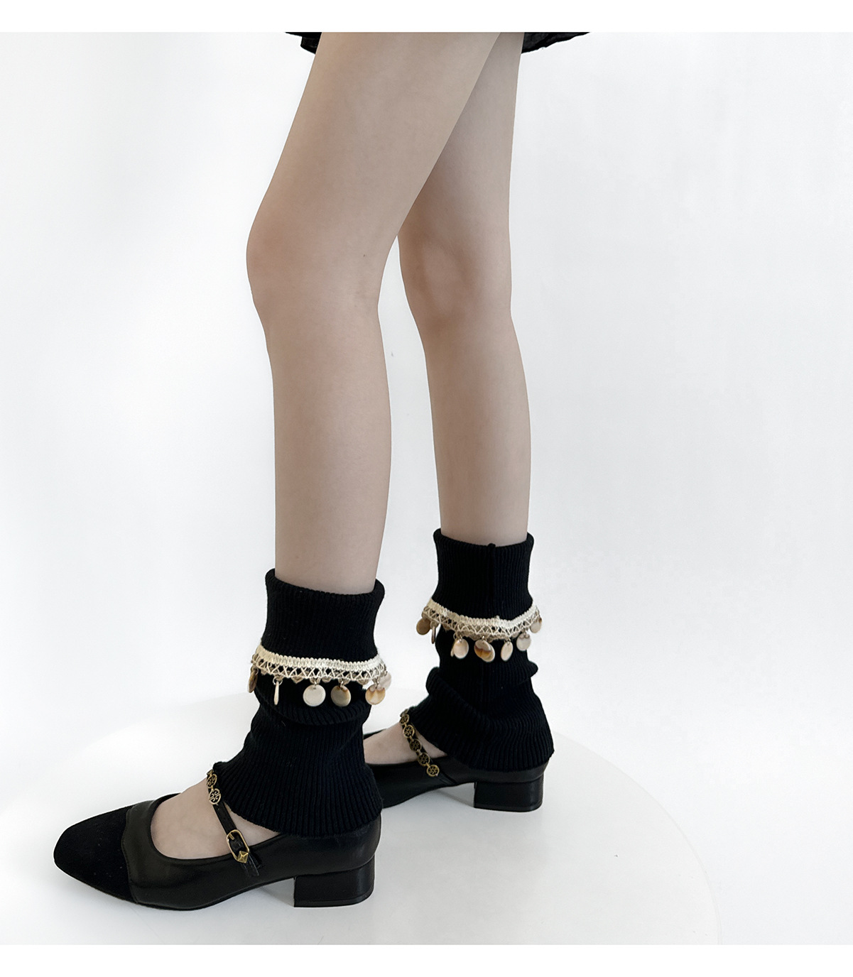 틈새 민족 스타일 30cm 얇은 다리 커버 쉘 장식 펜던트 턴 업 양말 수직 스트라이프 중간 길이의 스타킹 스택