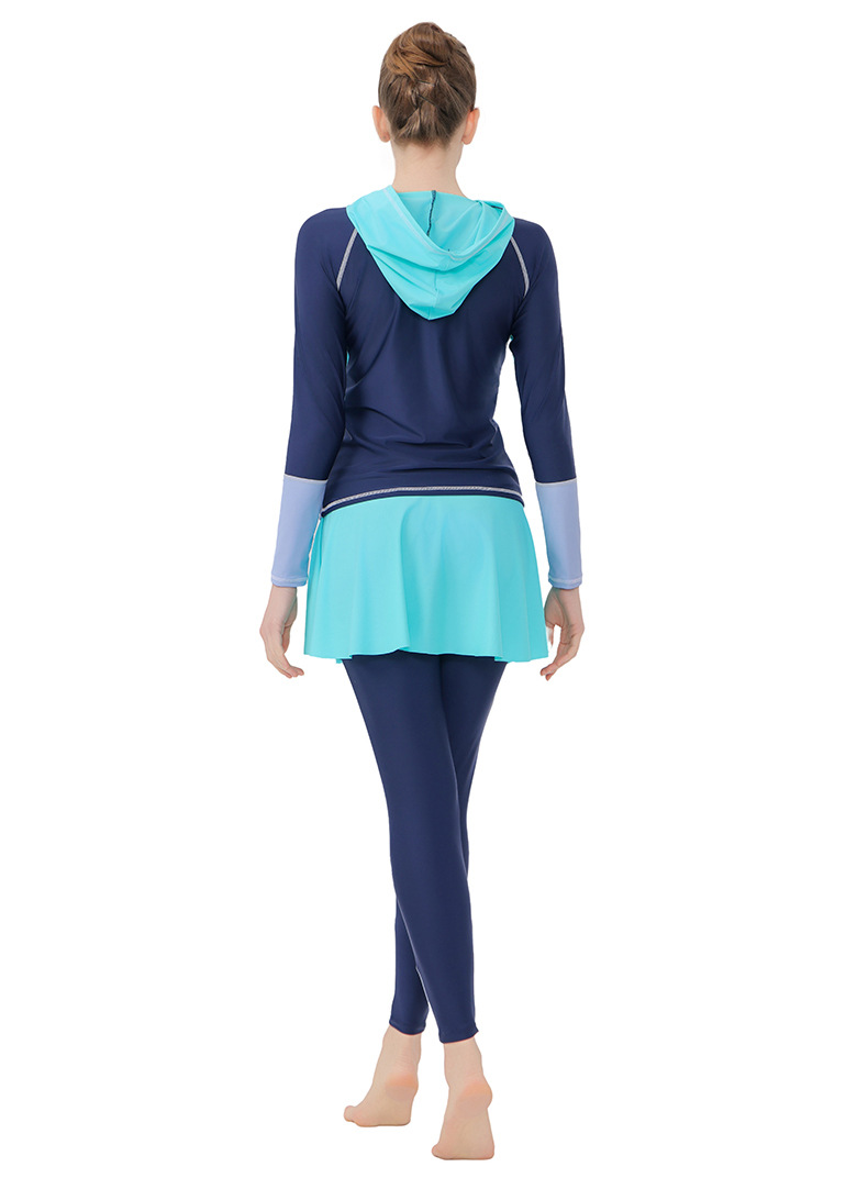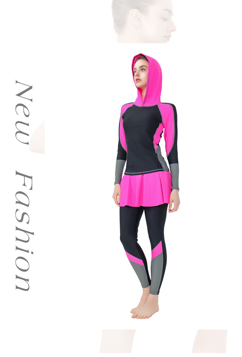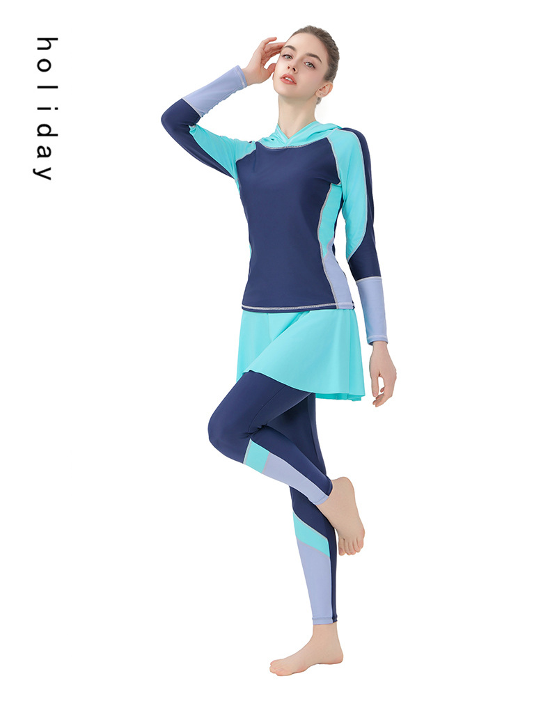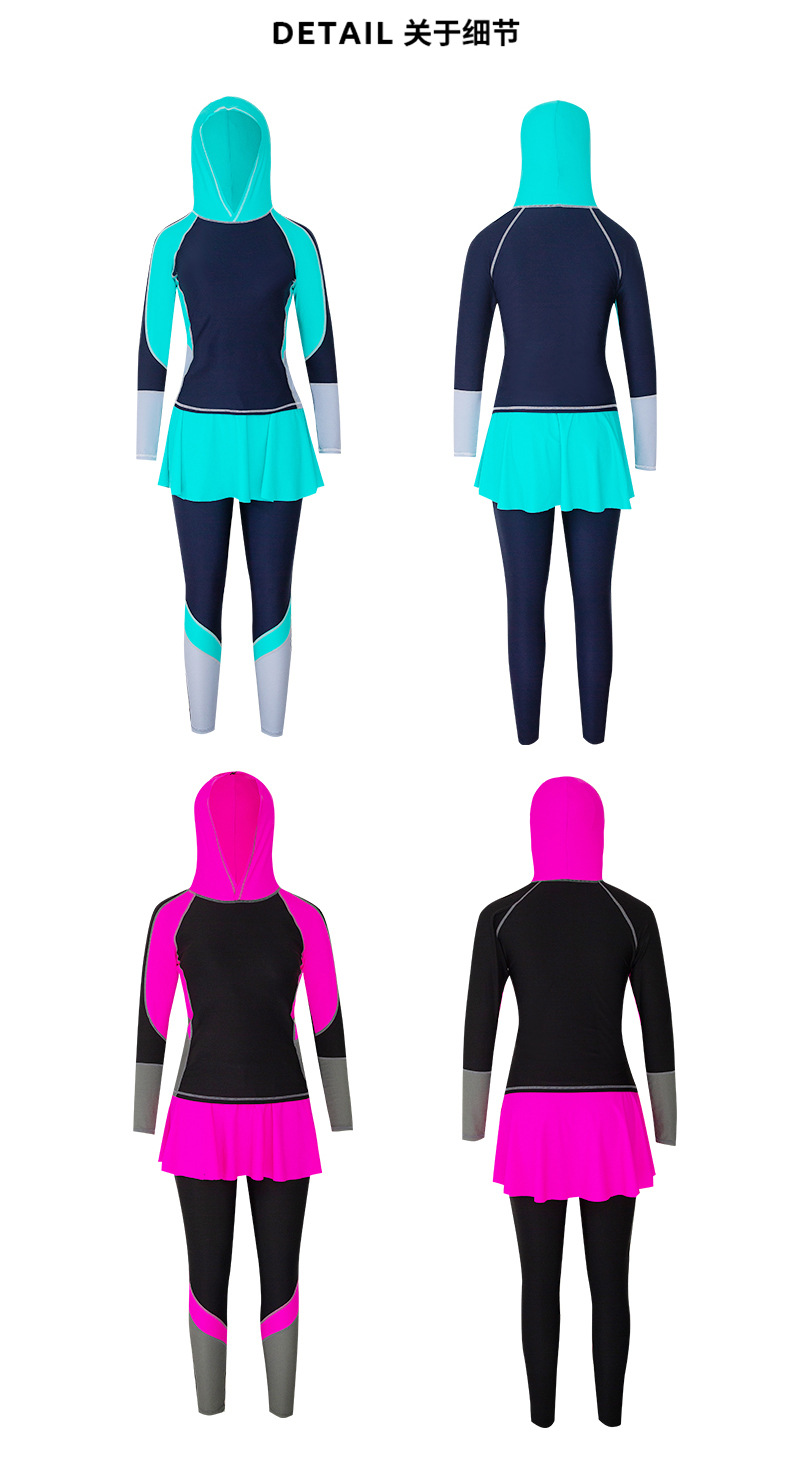 플러스 사이즈 수영복 여성용 긴팔 후드 스커트 스타일 자외선 차단제 배 커버 슬리밍 보수적 수영복 뚱뚱한 MM 잠수복 해파리 슈트