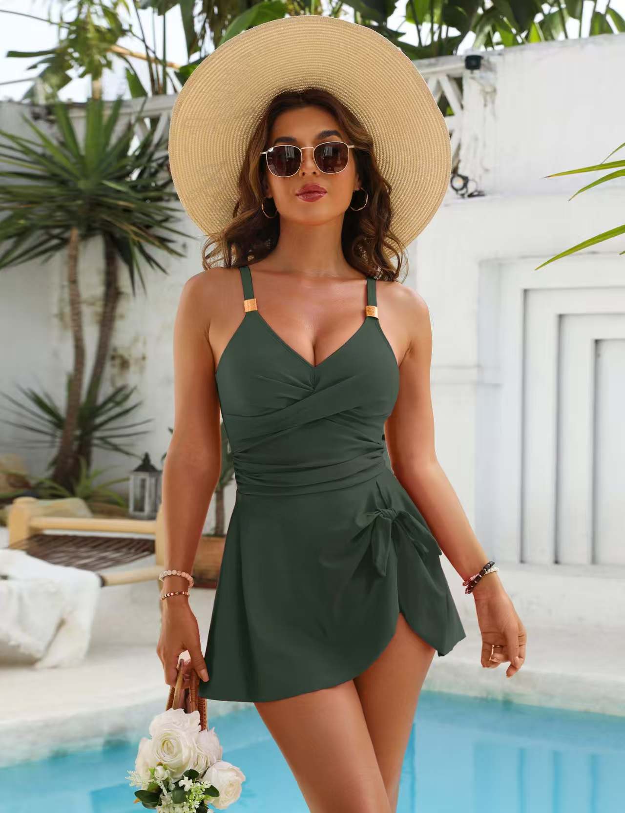 유럽과 미국에서 인기 있는 섹시한 단색 원피스 수영복, 아마존 핫 아이템, 슬림핏 스커트 스타일 끈 수영복, 여성용 스포츠 스타일