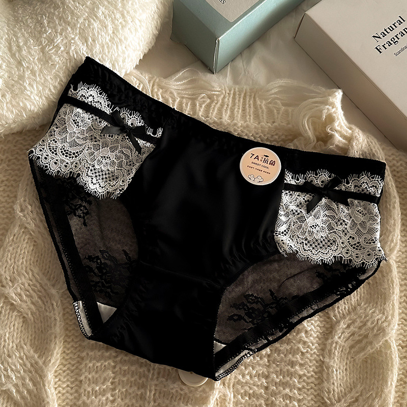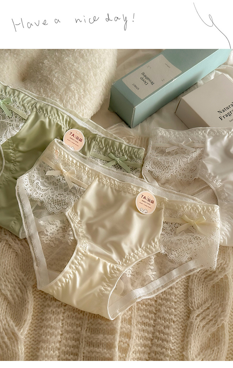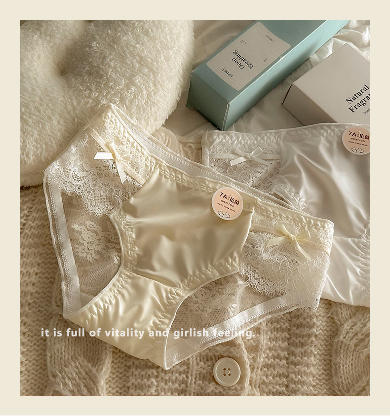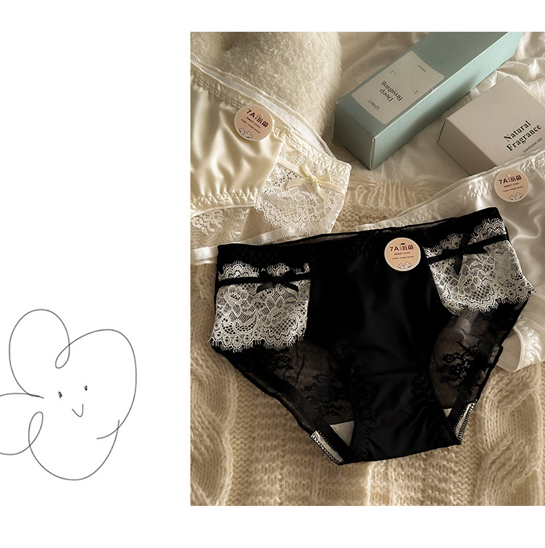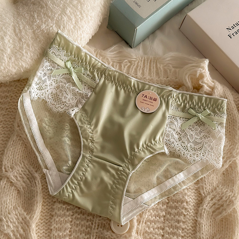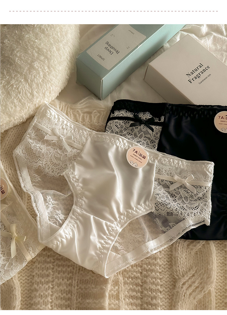 프렌치 메쉬 새틴 섹시한 레이스 7A 항균 코튼 가랑이 소녀 속옷 중간 낮은 허리 순수한 욕망 통기성 팬티