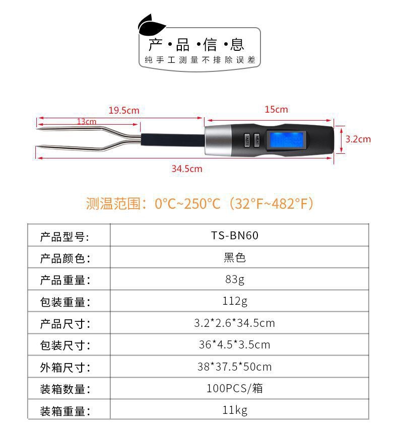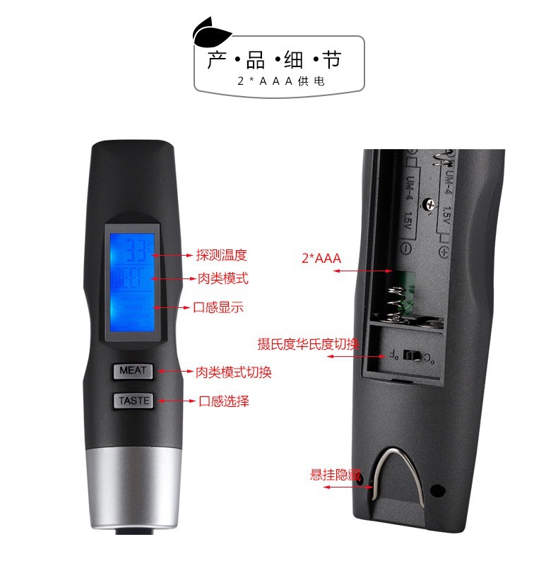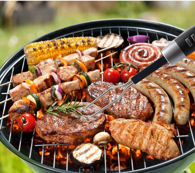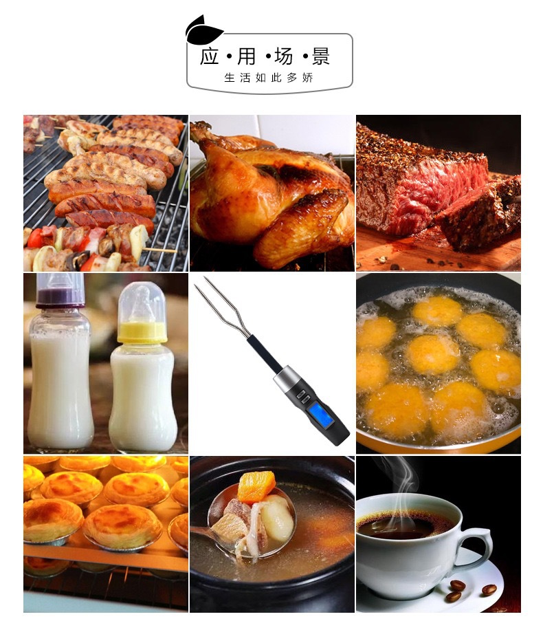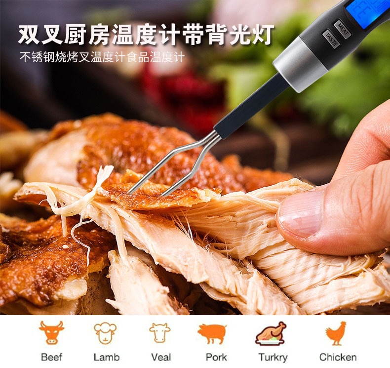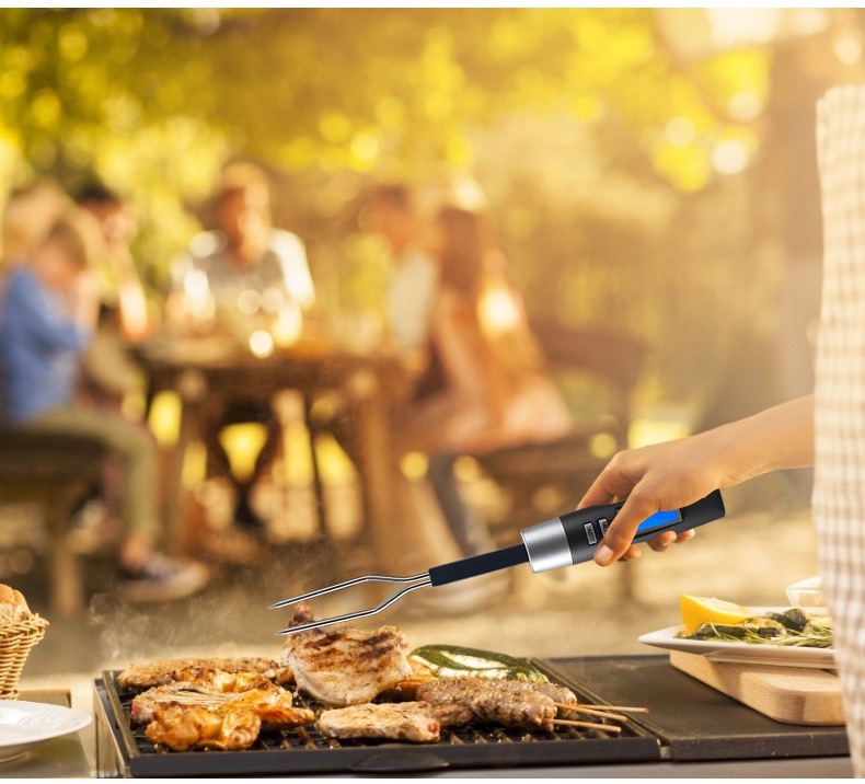 휴대용 바베큐 더블 포크 온도계 전자 디지털 디스플레이 피크닉 바베큐 식품 온도계 주방 요리 온도계