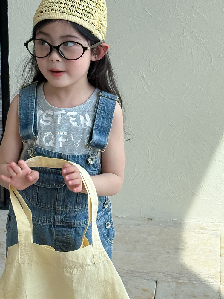 어린이 DD 동일 스타일 데님 스트래피 팬츠 2025 여름 새로운 한국 스타일 소년 및 소녀 데님 모피 가장자리 반바지