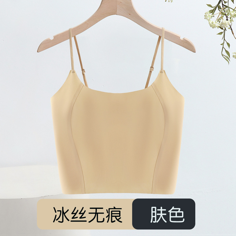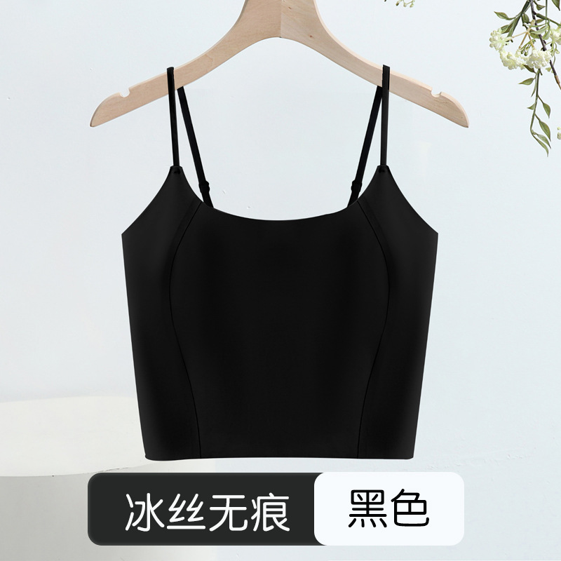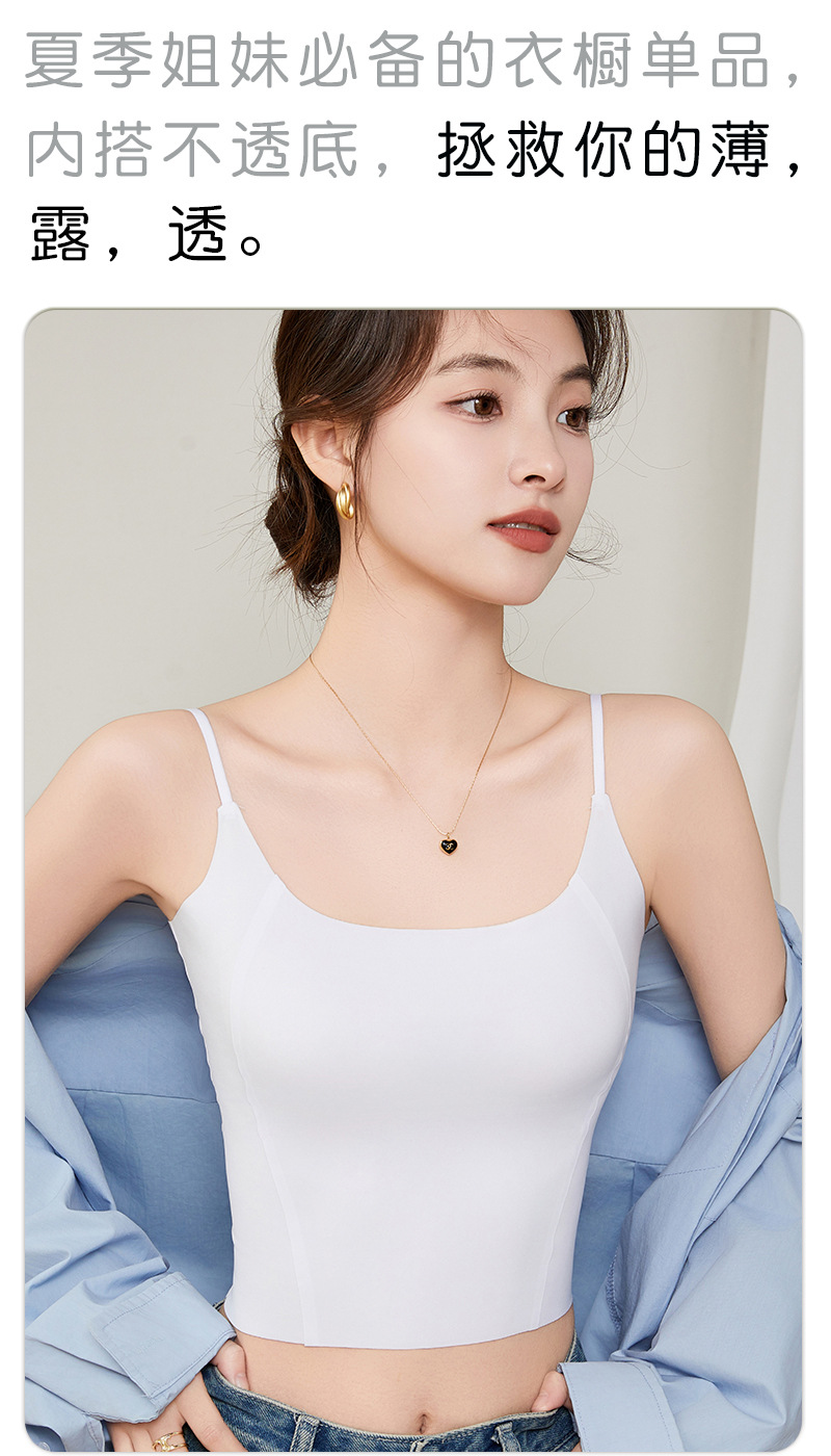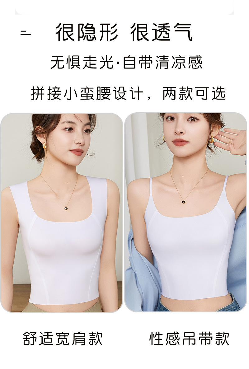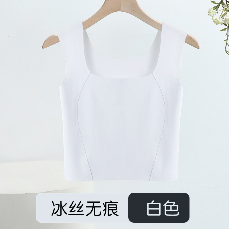 아이스 실크 얇은 안티 침투 내부 스트랩 여름 추적없는 아름다운 등 슬림베이스 튜브 탑 여성용 배꼽 조끼 착용