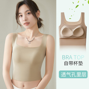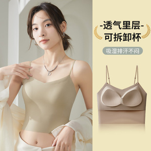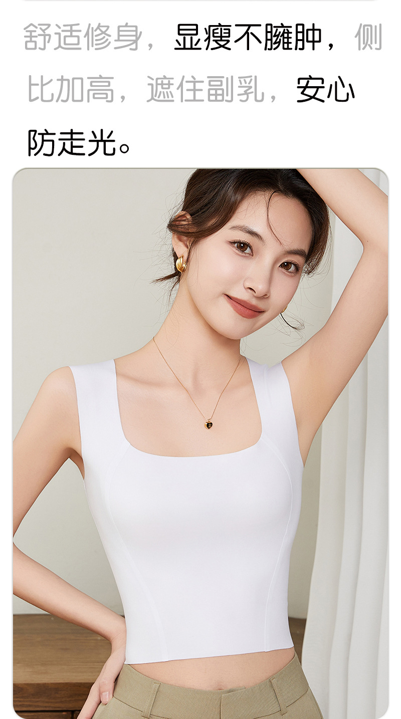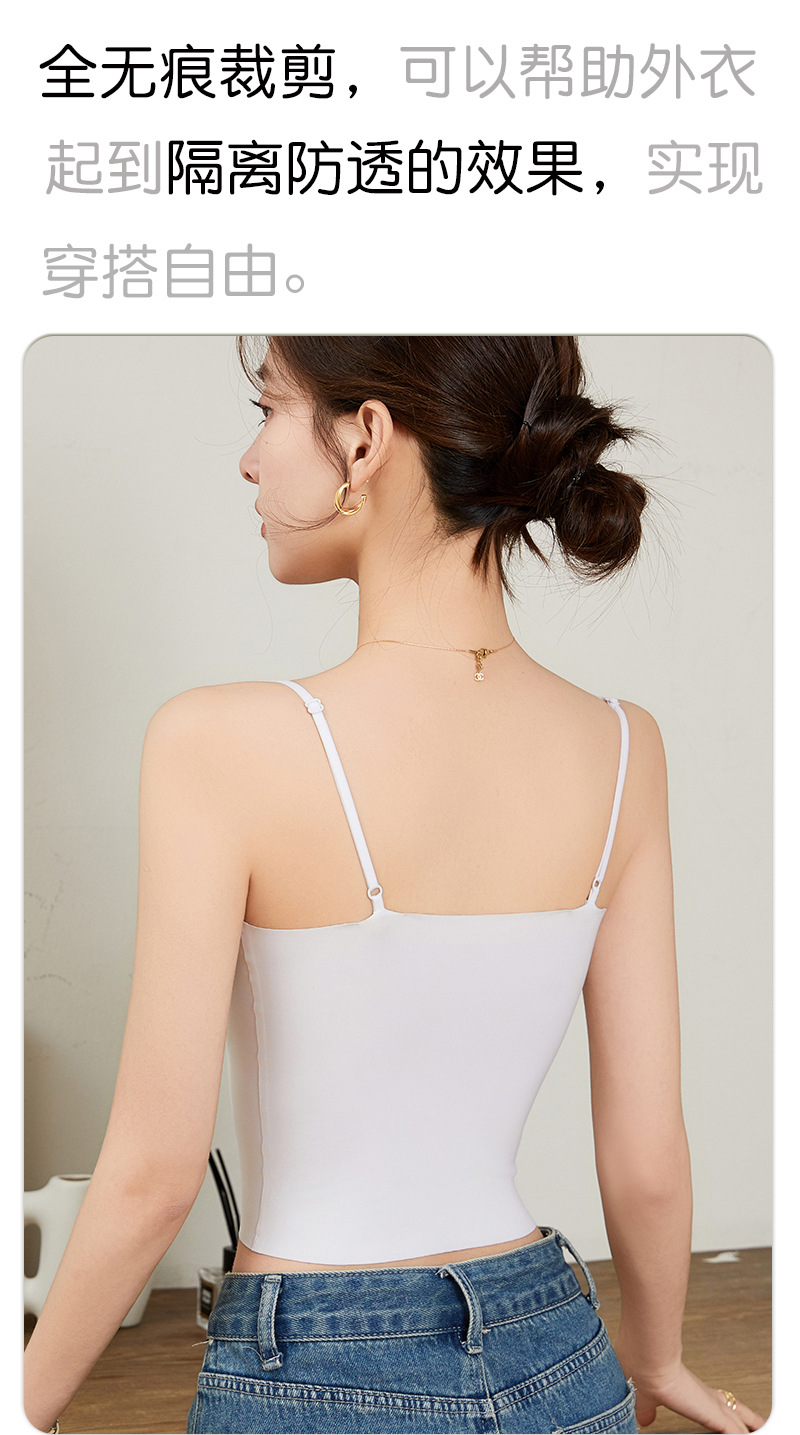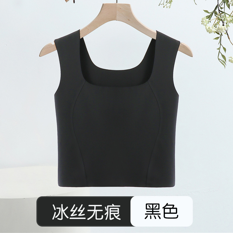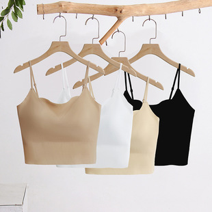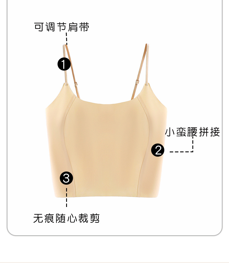 아이스 실크 얇은 안티 침투 내부 스트랩 여름 추적없는 아름다운 등 슬림베이스 튜브 탑 여성용 배꼽 조끼 착용