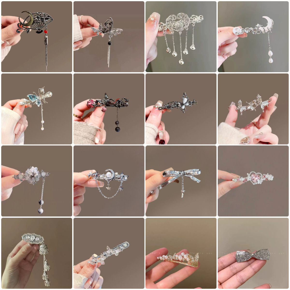 달콤한 쿨 스타일 초승달 꽃 나비 머리핀 여성용 라이트 럭셔리 독특한 Y2K 사이드 뱅 클립 클립 인 틈새 디자인 헤어핀스토어 가기