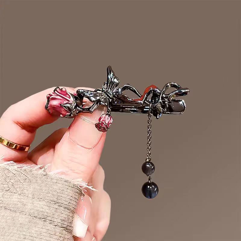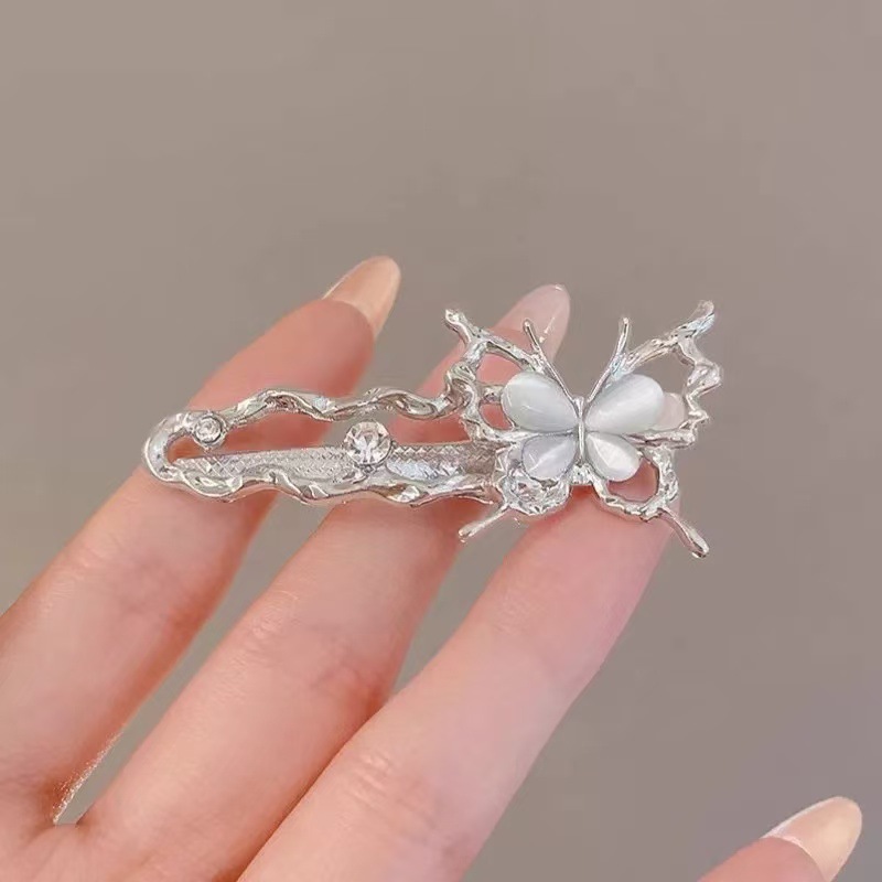 달콤한 쿨 스타일 초승달 꽃 나비 머리핀 여성용 라이트 럭셔리 독특한 Y2K 사이드 뱅 클립 클립 인 틈새 디자인 헤어핀