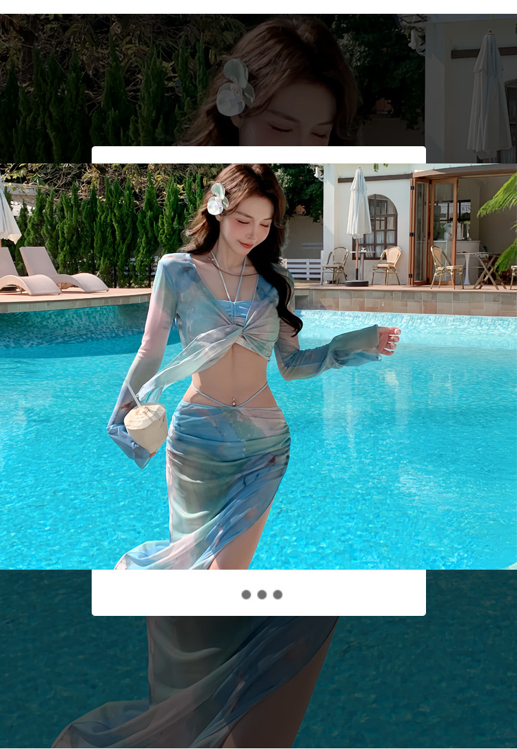 2025 새로운 하이 엔드 수영복 여성 롱 원피스 분할 4 피스 아름다운 섹시한 휴일 비키니 수영복