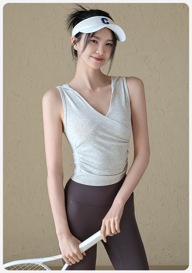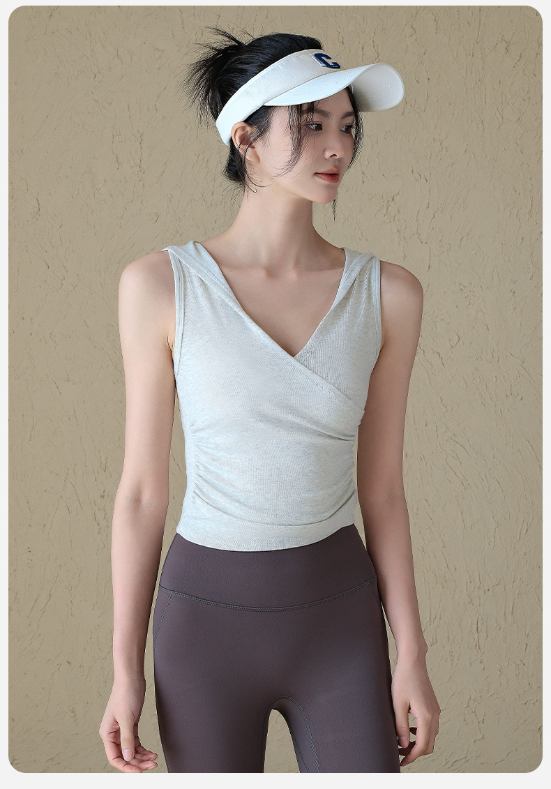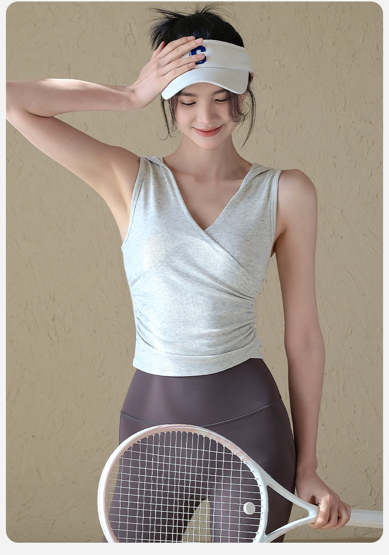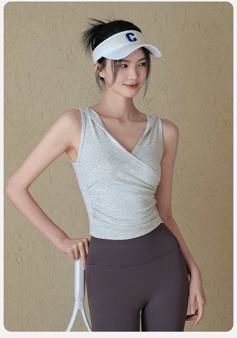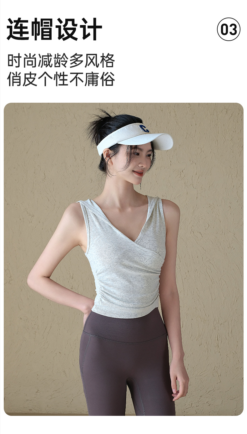 요가 탑 여성의 후드 V-Neck 아우터웨어 여름 새로운 민소매 캐주얼 러닝 스포츠 조끼 피트니스 티셔츠 블라우스