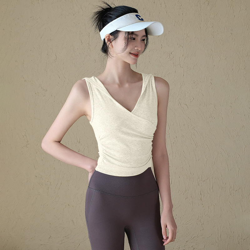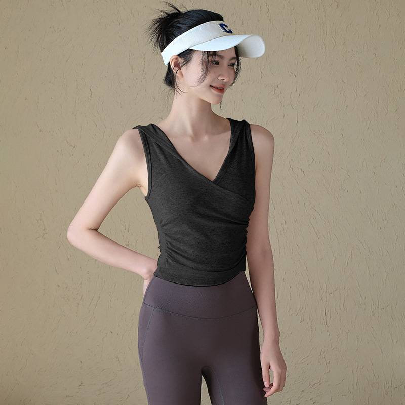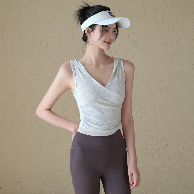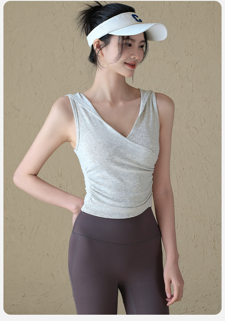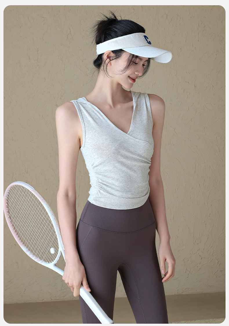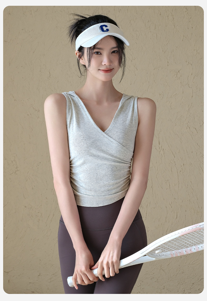 요가 탑 여성의 후드 V-Neck 아우터웨어 여름 새로운 민소매 캐주얼 러닝 스포츠 조끼 피트니스 티셔츠 블라우스