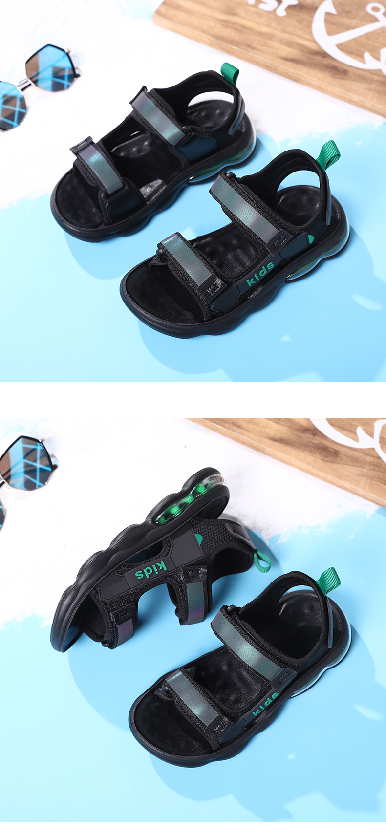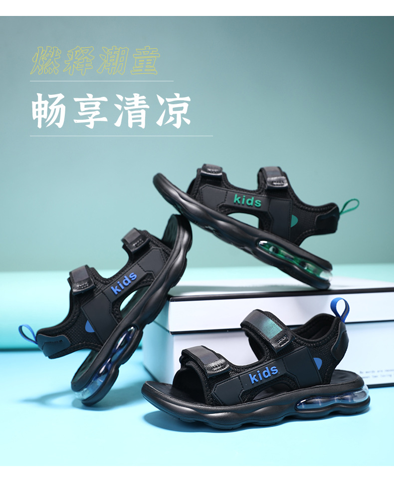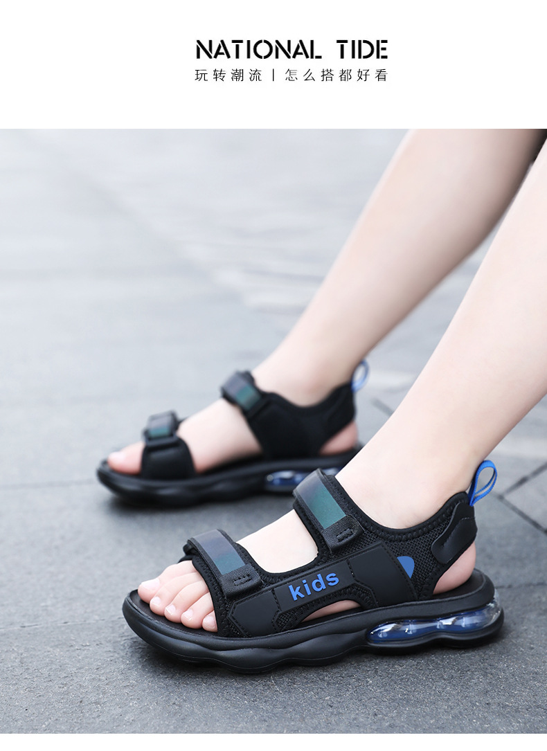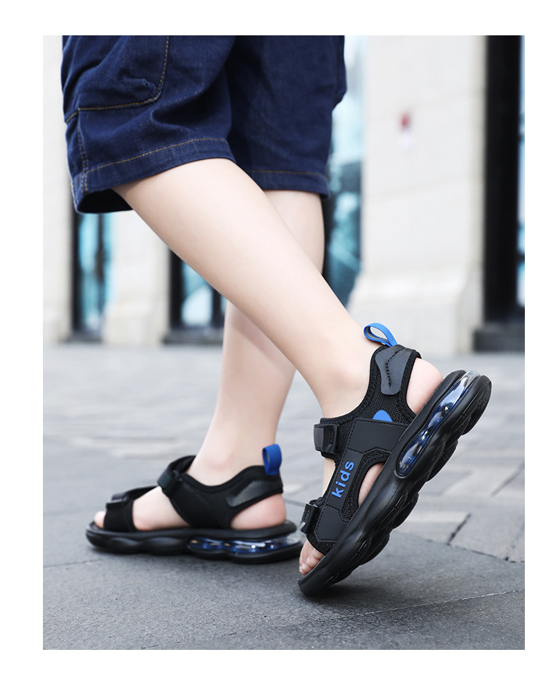 소년 샌들 새로운 어린이 소프트 솔 2025 여름 오픈 발가락 에어 쿠션 비치 신발 6-12 세 학생 샌들 도매스토어 가기