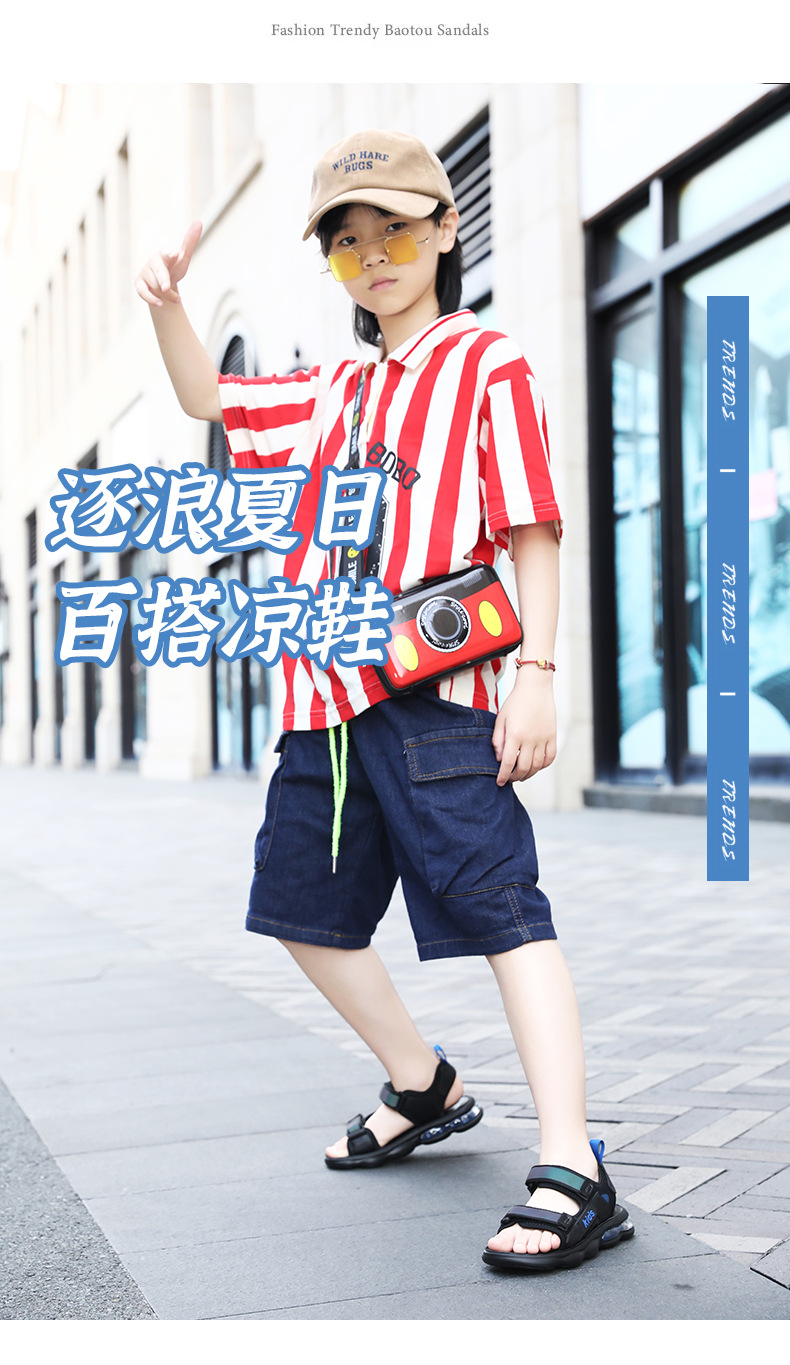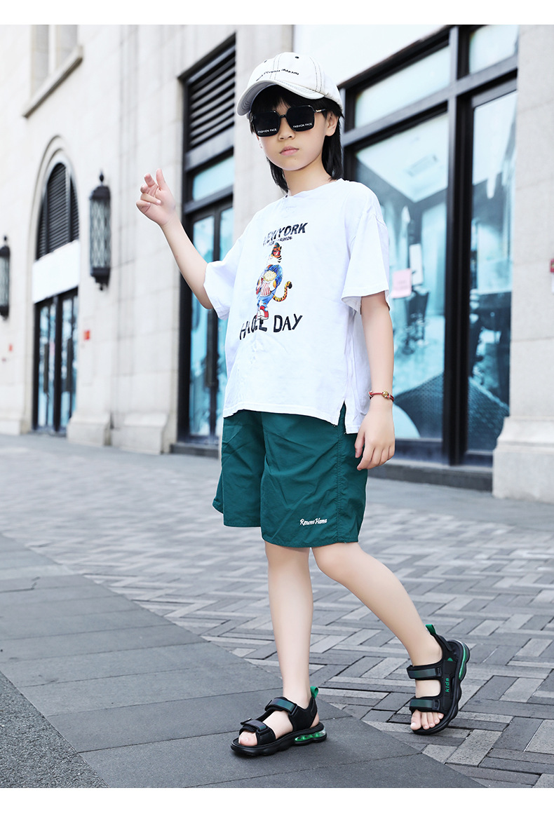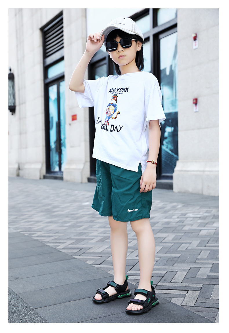 소년 샌들 새로운 어린이 소프트 솔 2025 여름 오픈 발가락 에어 쿠션 비치 신발 6-12 세 학생 샌들 도매스토어 가기