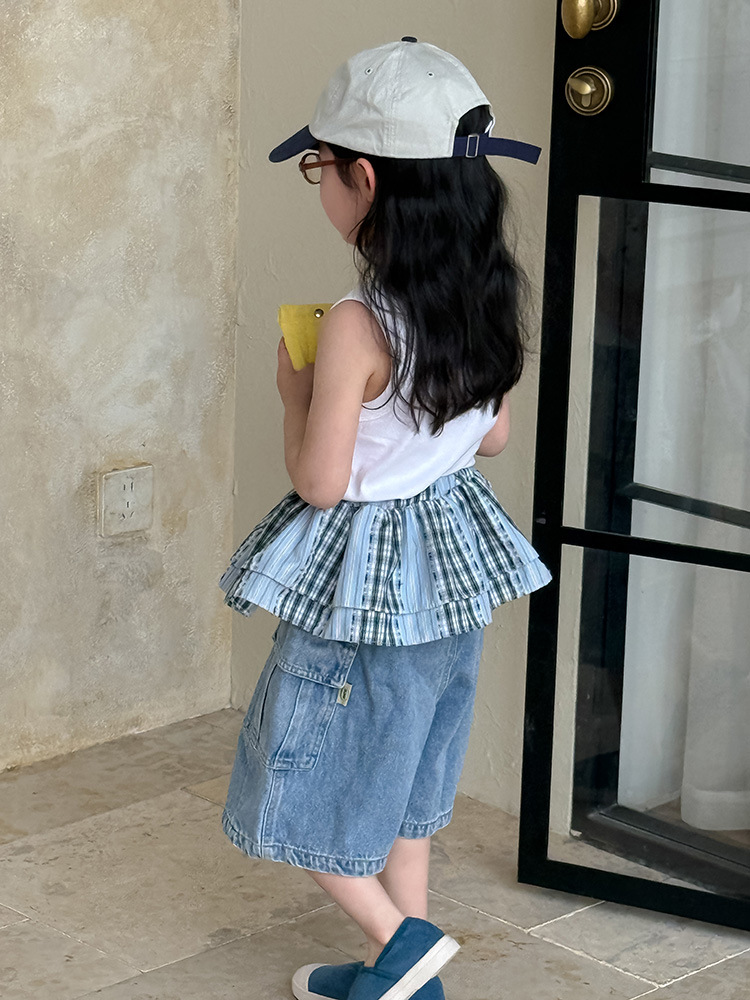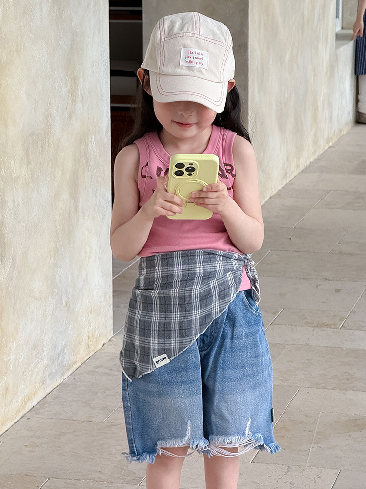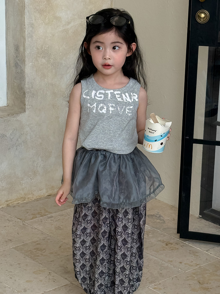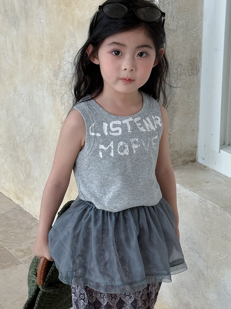어린이 편지 조끼 2025 여름 새로운 한국식 멀티 컬러 편지 갈비 기지 소년 소녀를위한 니트 조끼