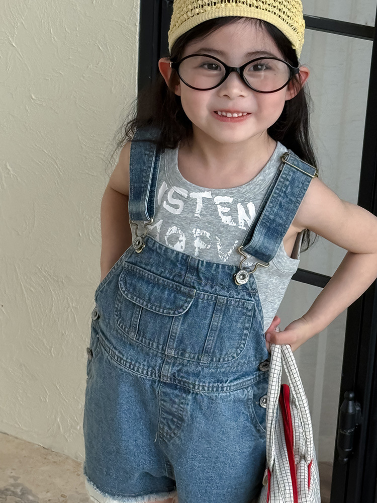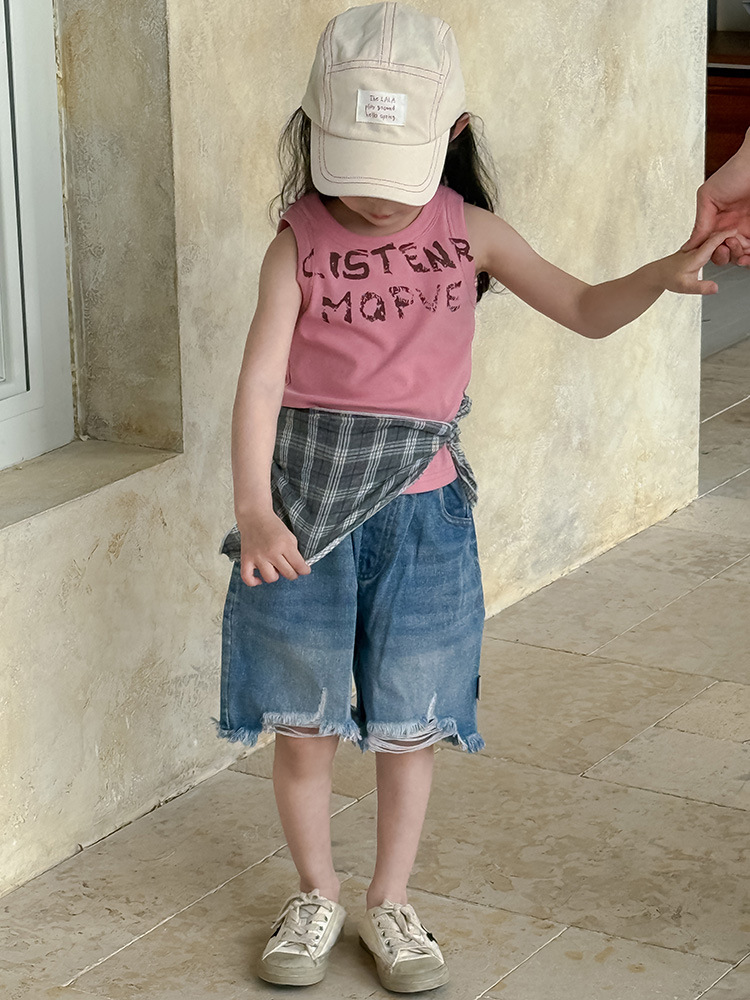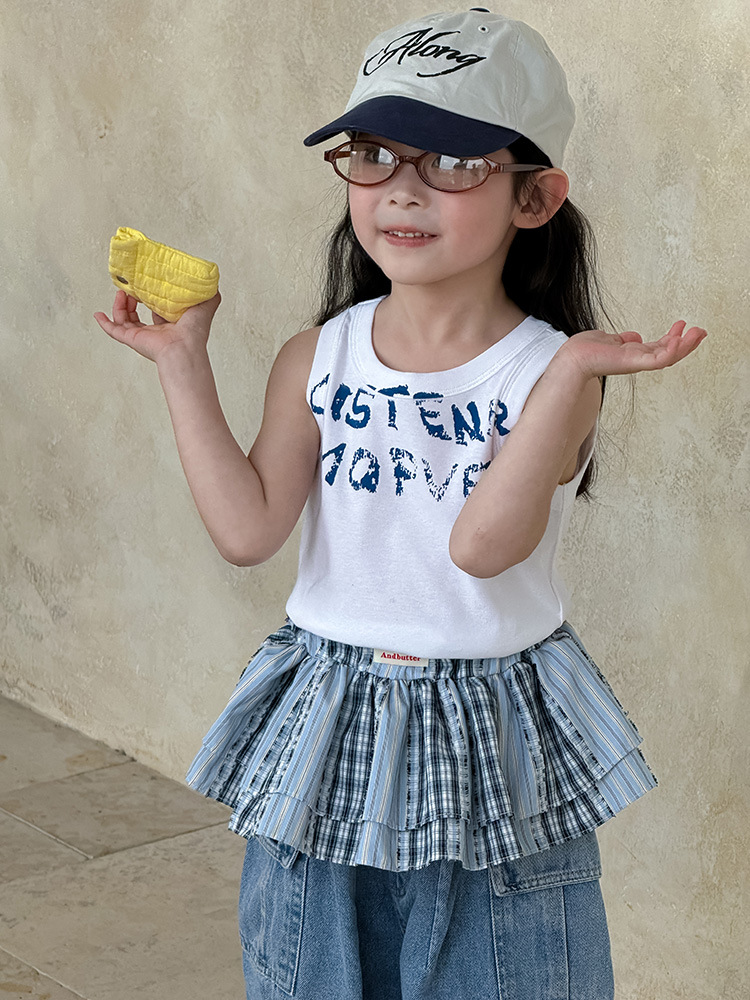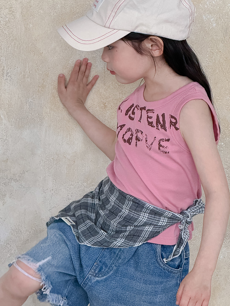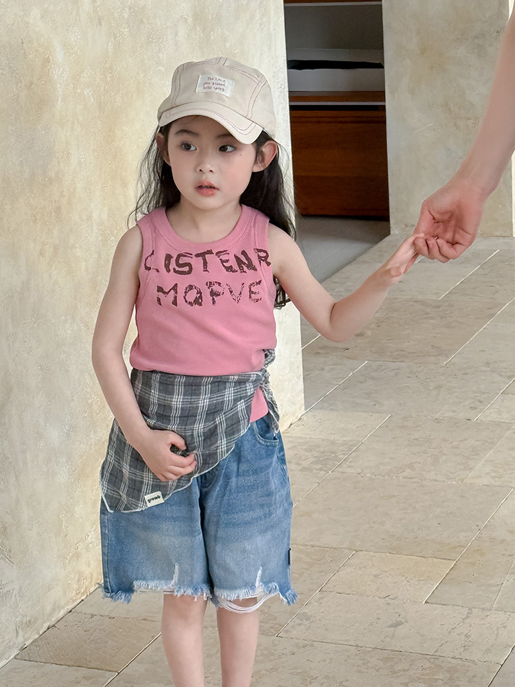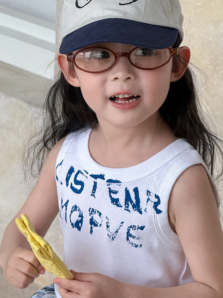 어린이 편지 조끼 2025 여름 새로운 한국식 멀티 컬러 편지 갈비 기지 소년 소녀를위한 니트 조끼스토어 가기