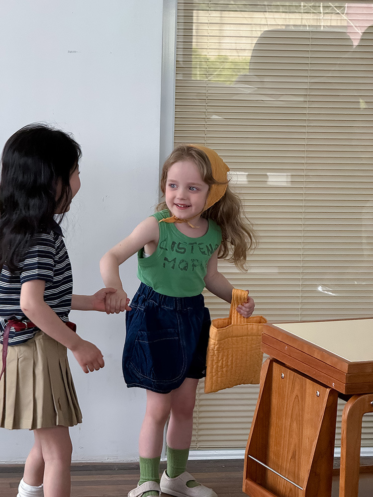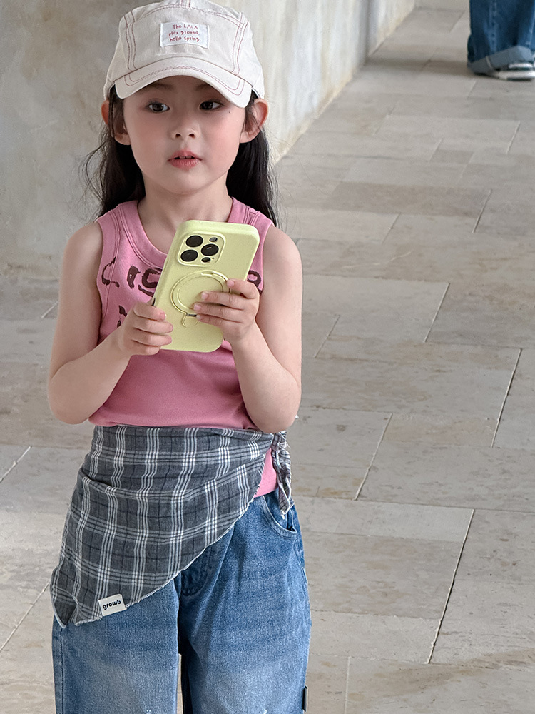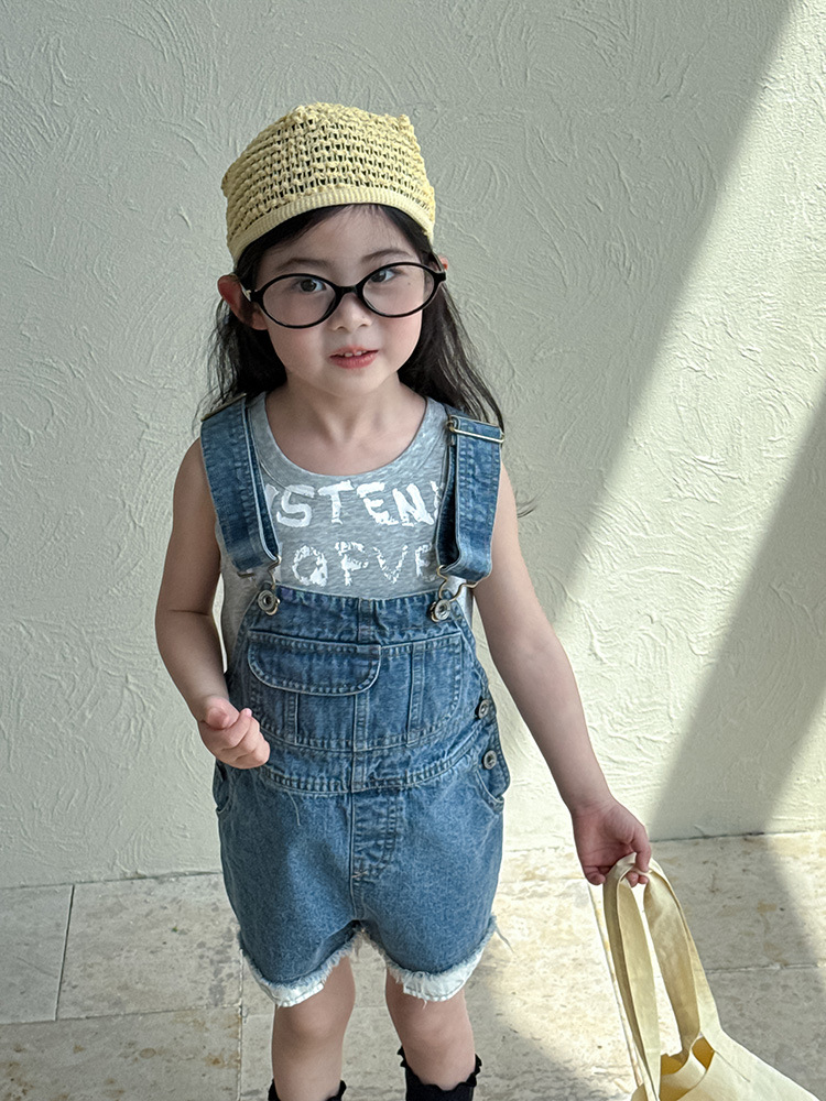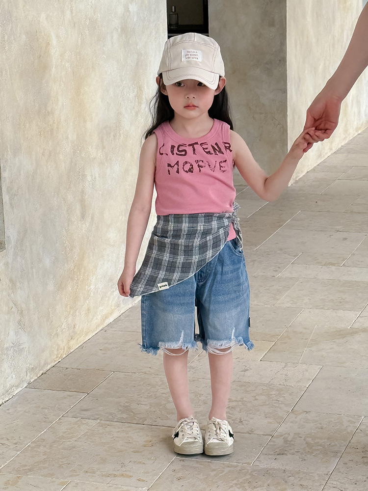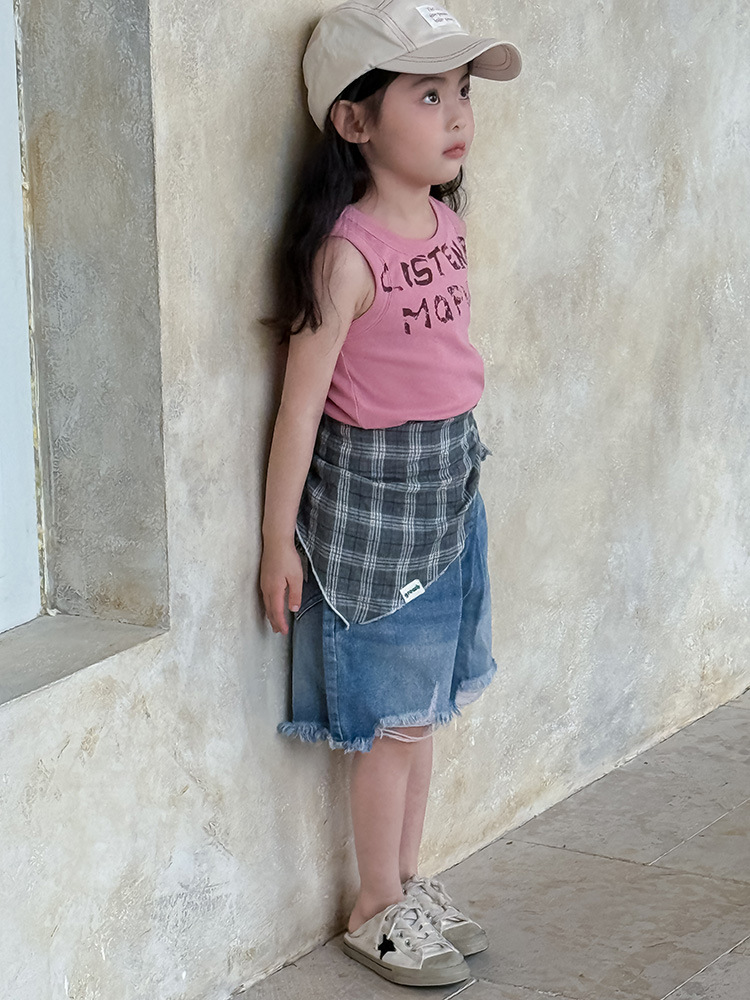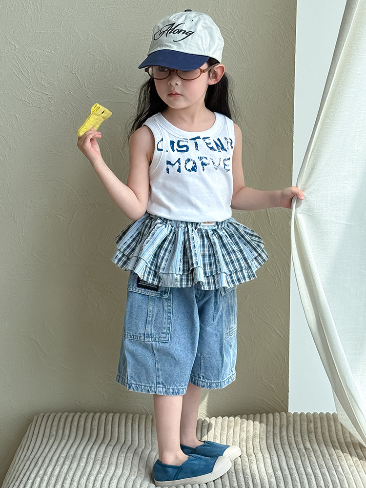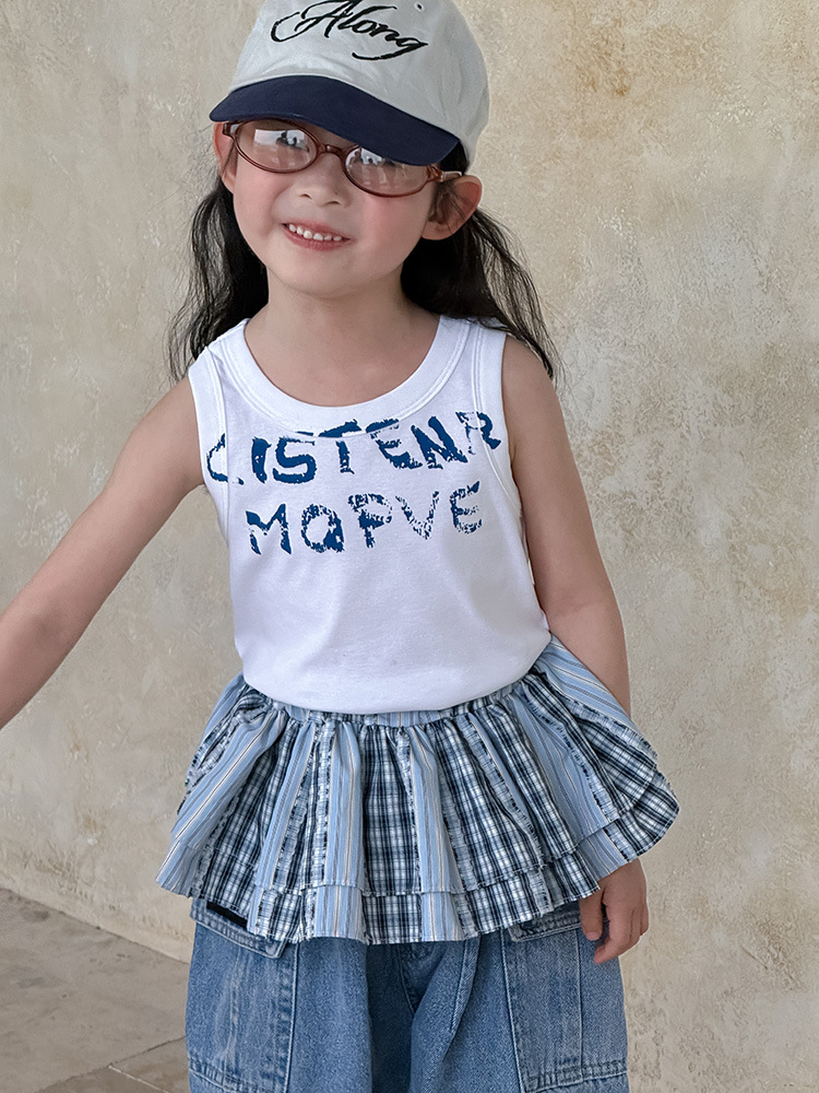 어린이 편지 조끼 2025 여름 새로운 한국식 멀티 컬러 편지 갈비 기지 소년 소녀를위한 니트 조끼스토어 가기