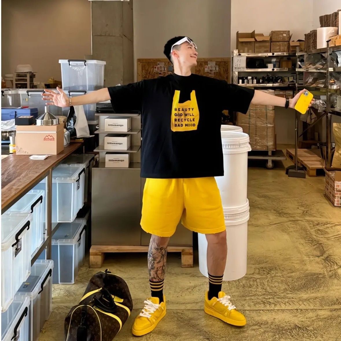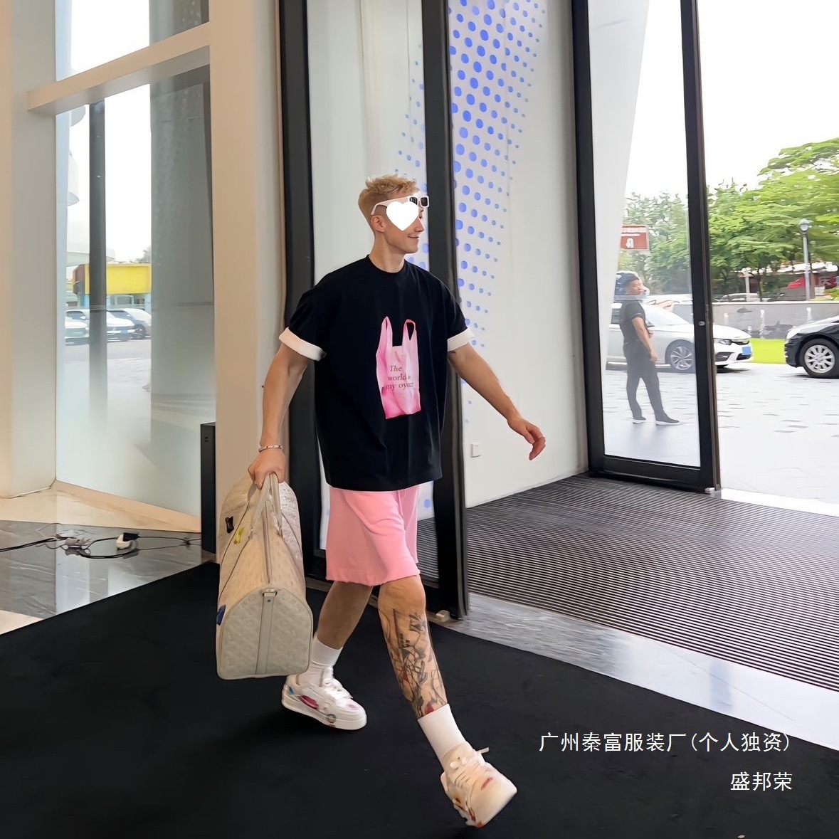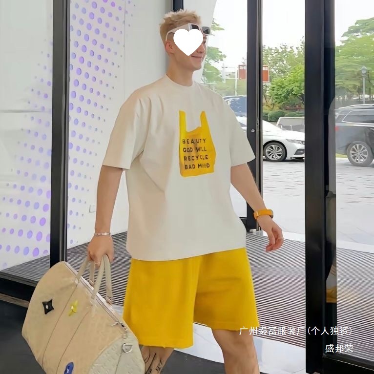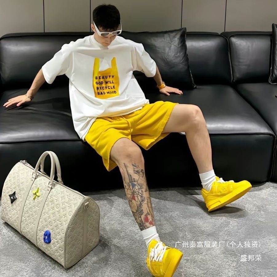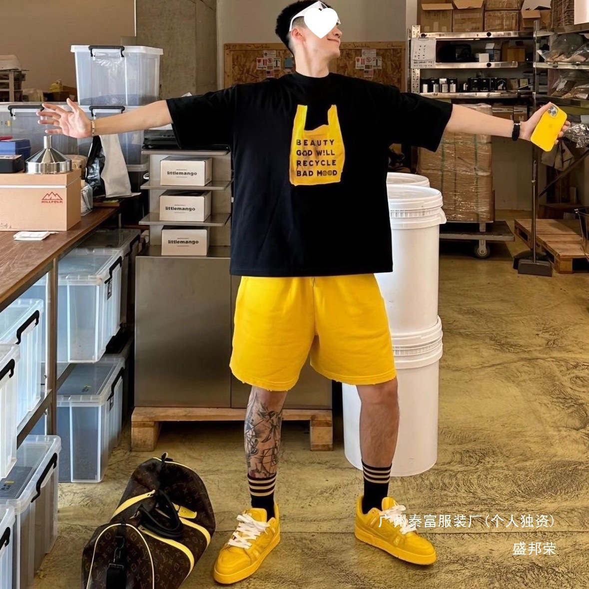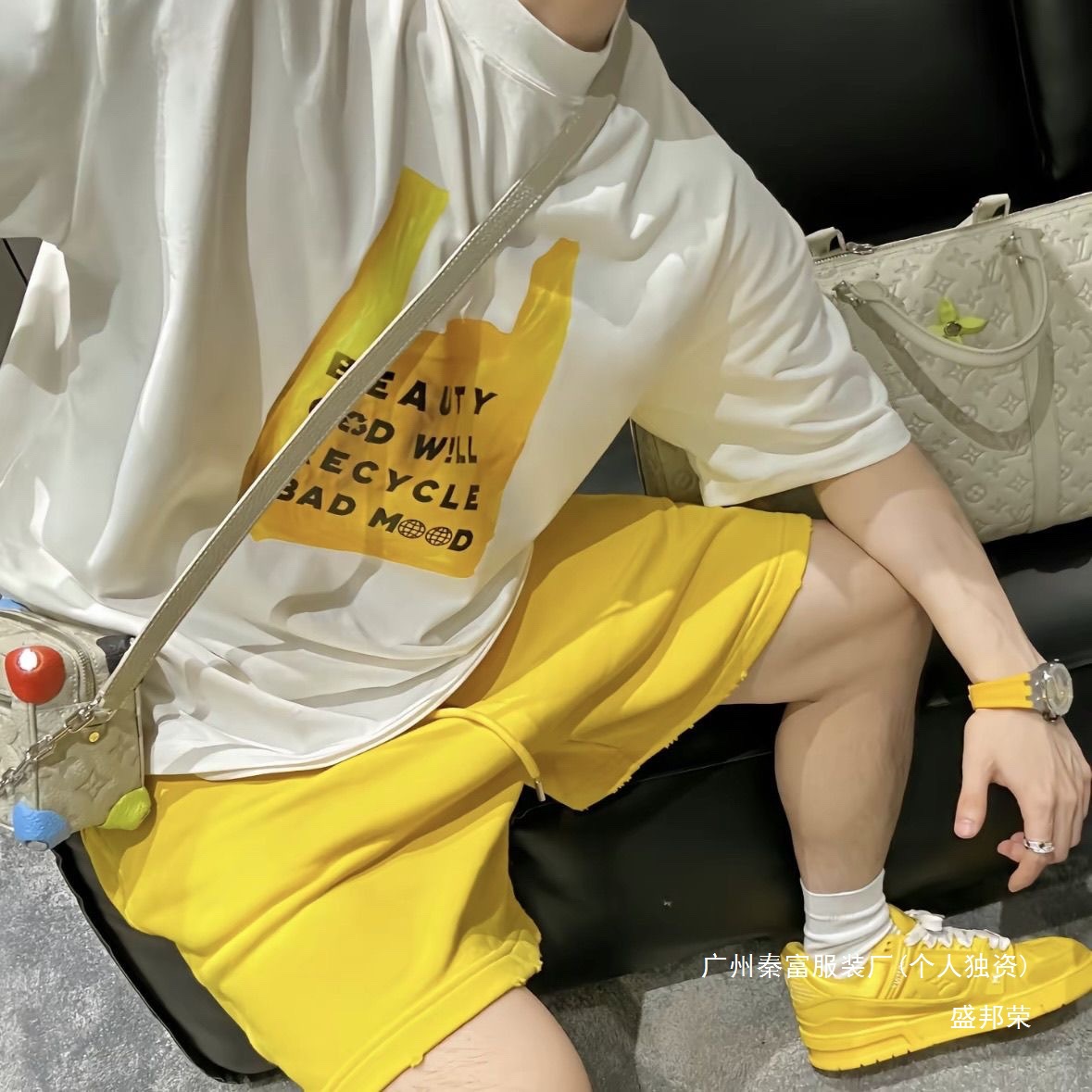 여름 새 비닐 봉투 인쇄 캐주얼 정장 남성 유행 브랜드 패션 반팔 티셔츠 반바지 캐주얼 투피스 세트스토어 가기