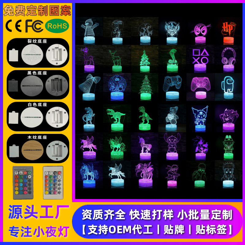 침실 3D 입체 야간 조명 애니메이션 모양 램프 컬러 터치 감지 분위기 램프 만화 휴일 선물 사용자 정의스토어 가기