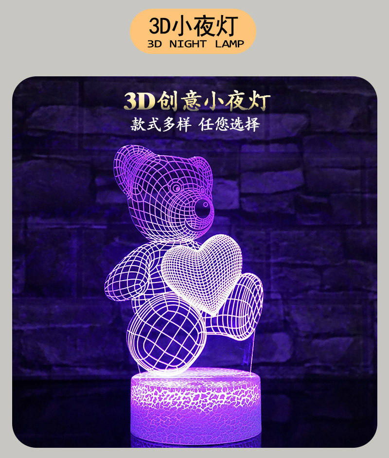 침실 3D 입체 야간 조명 애니메이션 모양 램프 컬러 터치 감지 분위기 램프 만화 휴일 선물 사용자 정의