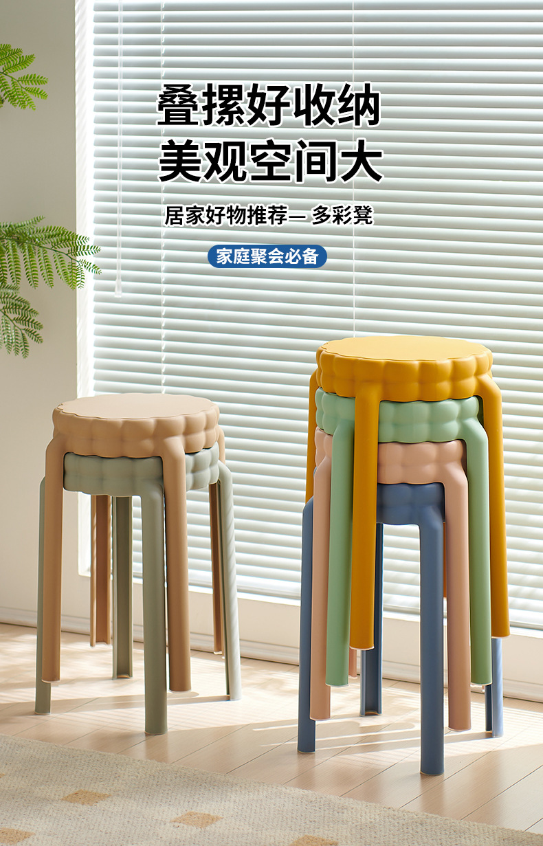 북유럽 플라스틱 의자, 두꺼운 원형 의자, 쌓을 수 있는 인터넷 연예인 높은 벤치, 가정용 식탁 의자, 예비 화장대 의자스토어 가기