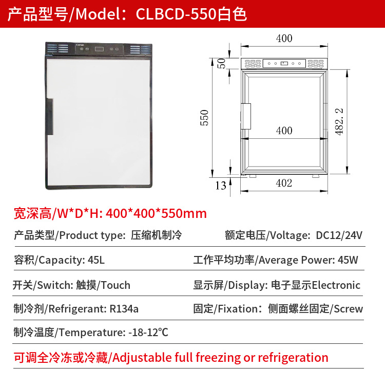 • 400x400x550mm 흰색, 전자 스크린, 조절 가능한 완전 냉장 및 냉동