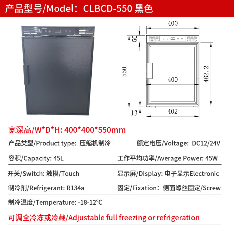 • 400x400x550mm 검정색, 전자 스크린, 조절 가능한 완전 냉장 및 냉동