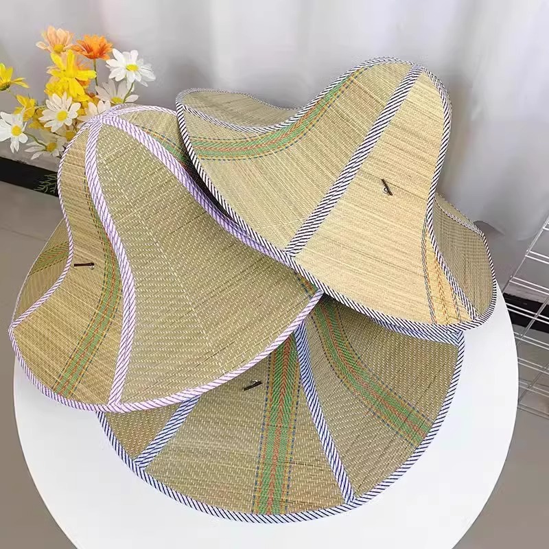 새로운 밀짚 모자 목가적 인 스타일 해변 큰 브림 햇빛 햇빛 모자 손으로 만든 2025 새로운 낚시 농부 멋진 모자
