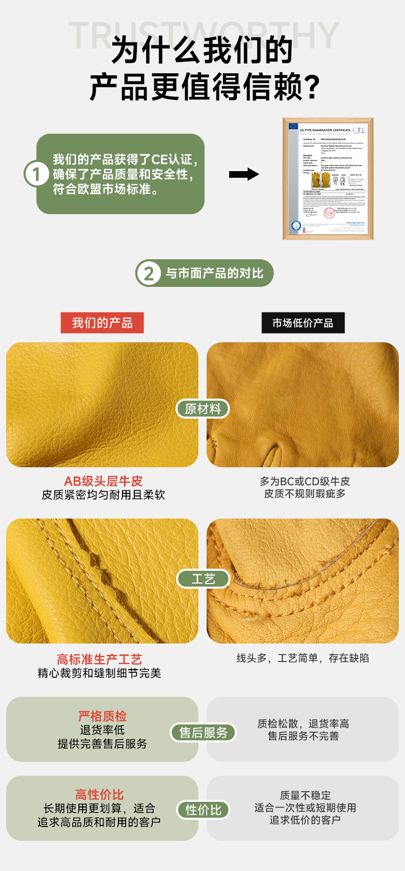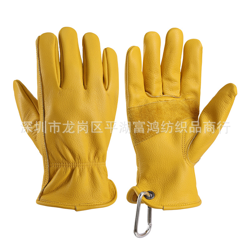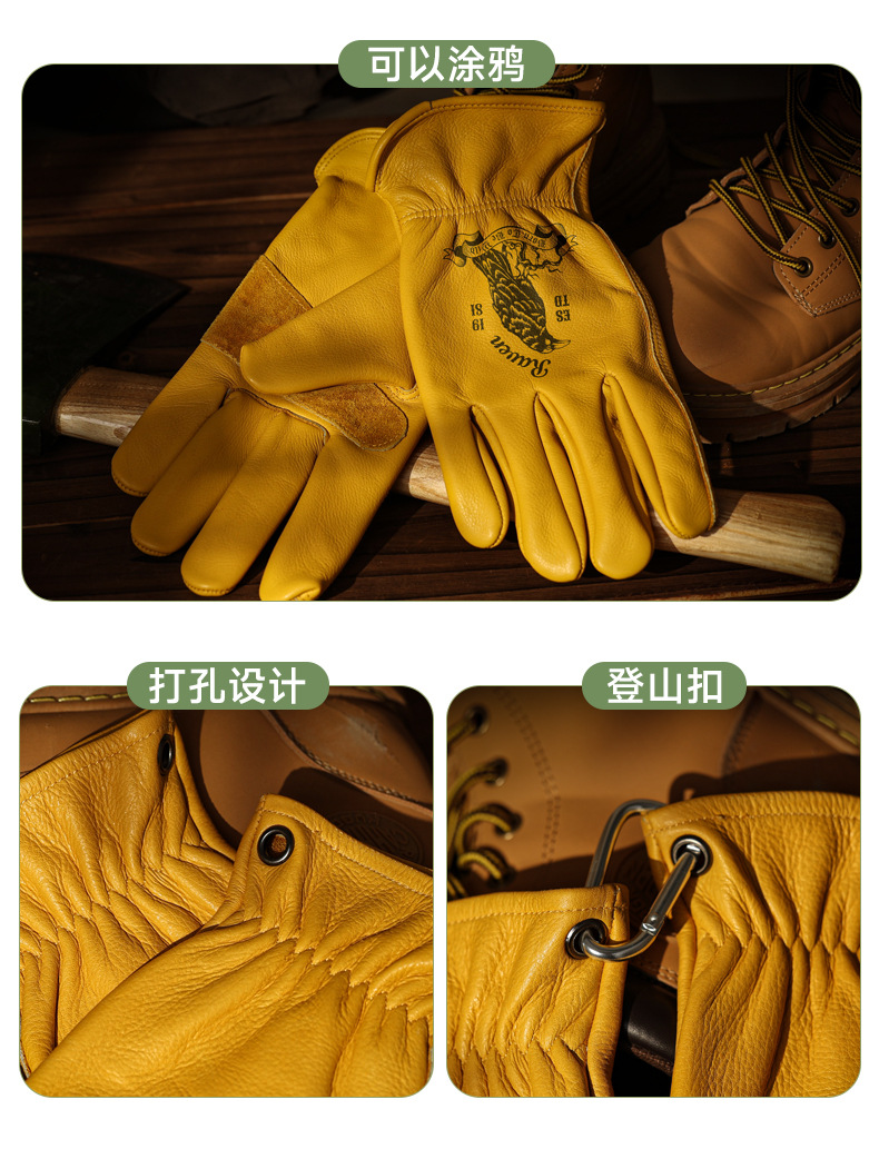 소 가죽 캠핑 장갑의 첫 번째 레이어 미끄럼 방지 휴대용 하이킹 버클 야외 사이클링 하이킹 가죽 장갑