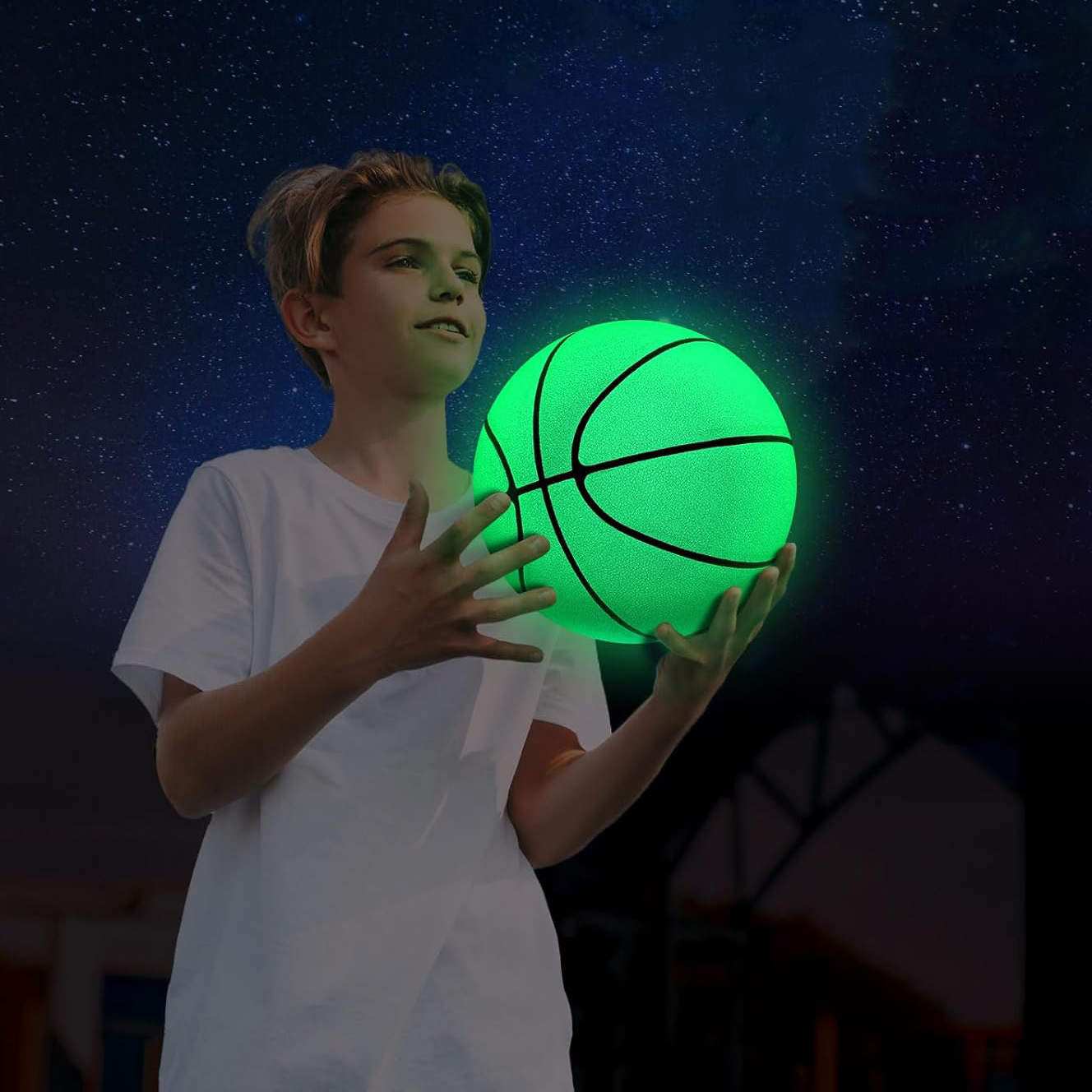 국경 간 뜨거운 판매 18CM 녹색 발광 농구 PVC 풍선 자기 발광 형광 탄성 공 어린이 장난감 공