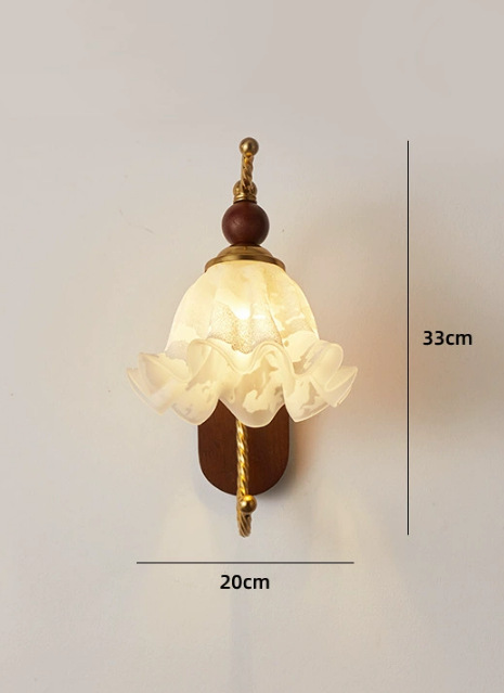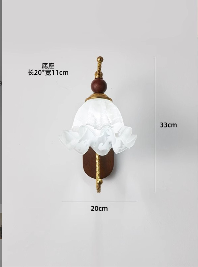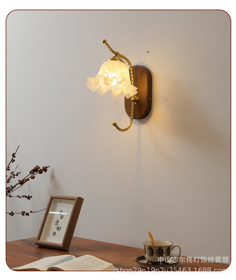 중세 스타일 거실 벽 램프 프랑스 복고풍 호두 유리 하이 엔드 따뜻한 침실 머리맡 복도 통로 눈 보호